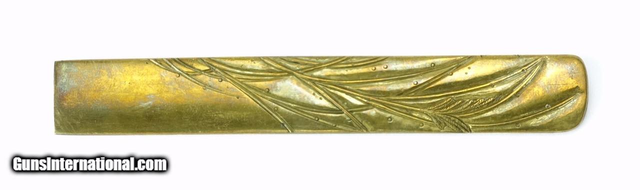 Description: "Kinko Kodzuka. Polished brass. Dragon fly hovering over marsh reeds. Unsigned. SOLD |