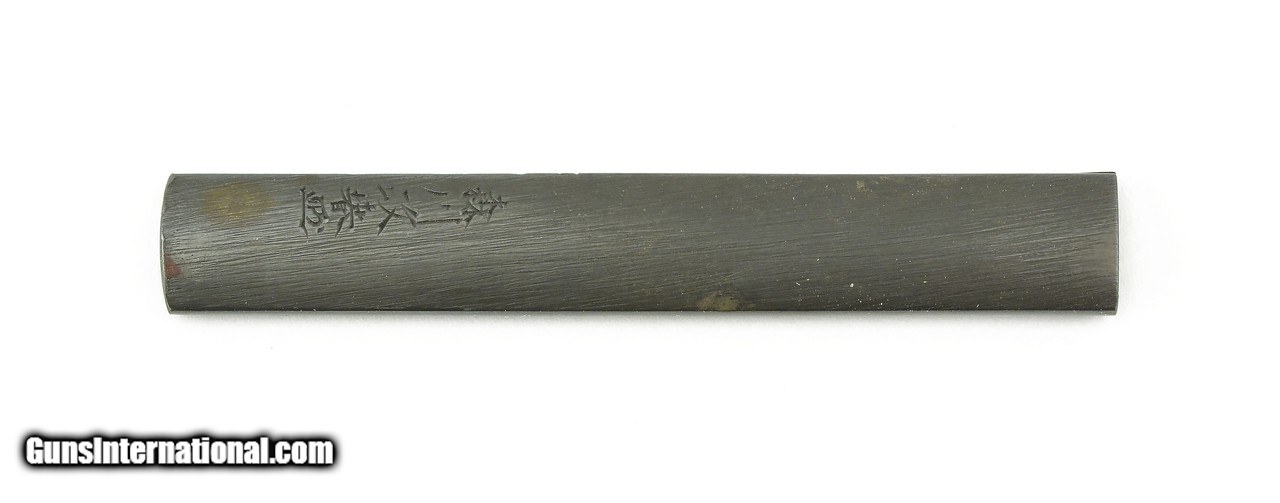 Description: "Kinko Kodzuka. Polished shakudo ground. Robed figure with scroll. Gold highlights. Boxed with N.B.T.H.K. certificate from 1971. Signed: Morikawa Masa Haru. Ref. Baur, P. 382. SOLD |