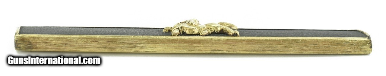 Description: "Kinko Kodzuka. Shakudo nanako ground. Subject is gold prancing horse. Reverse is gold cat-scratch pattern. SOLD |