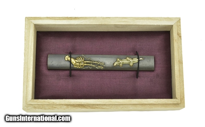 Description: "Kinko Kodzuka. Shibuichi ground gold lobster with silver seaweed. Unsigned. Boxed. SOLD |