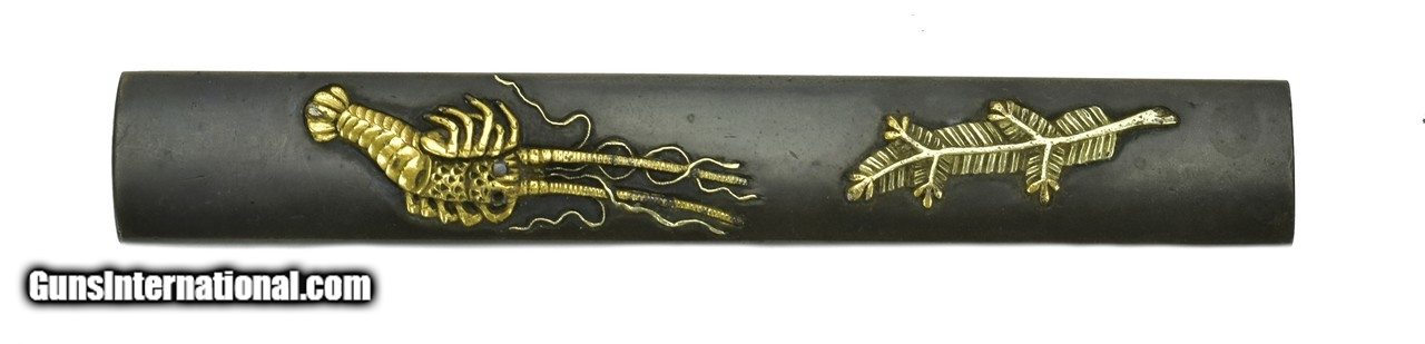 Description: "Kinko Kodzuka. Shibuichi ground gold lobster with silver seaweed. Unsigned. Boxed. SOLD |