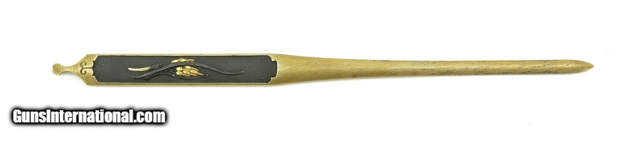 Description: "Kinko Kogai. Sheave of wheat on very fine shakudo ground. The subject is of shakudo,and gold. Excellent condition overall and very fine execution of work. SOLD |