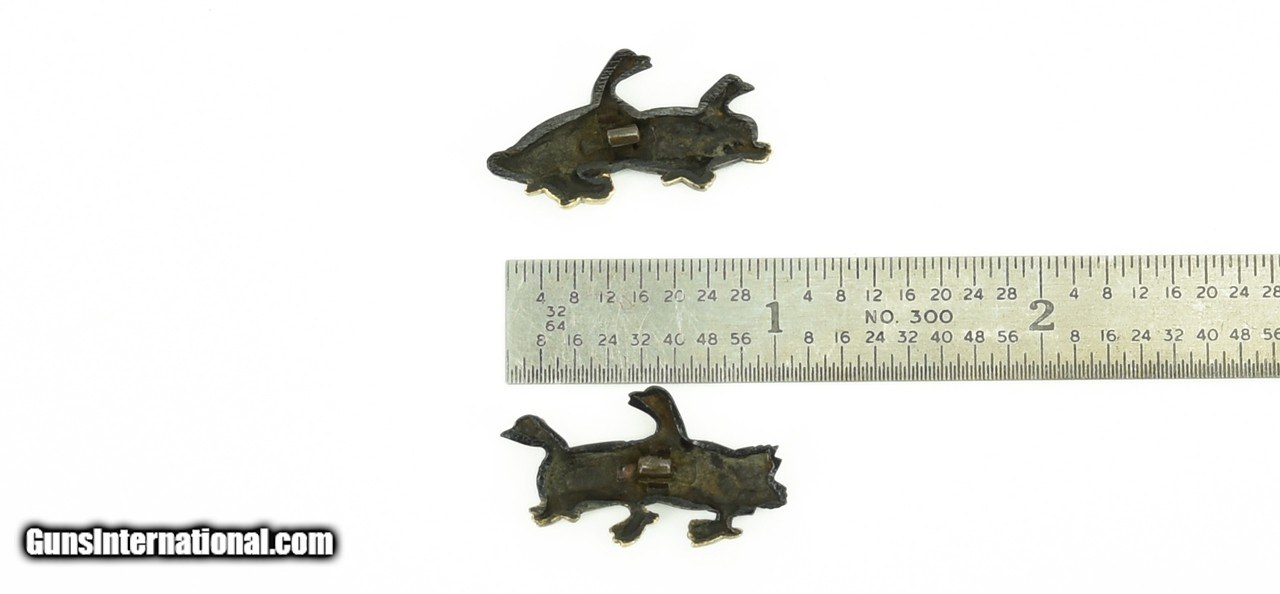 Description: "Kinko Menuki. Shakudo Geese with Shibuichi bodies and gold highlights. Comes with N.B.T.H.K certificate. Tanto sized. Waki Goto branch of mainline Goto. Unsigned. SOLD |