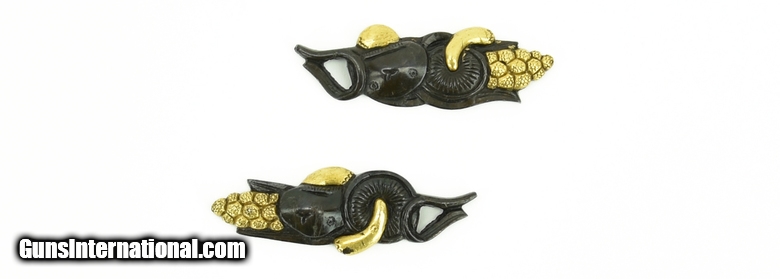Description: "Kinko Menuki. Millet in gold and Shakudo. Katana sized in custom box. SOLD |