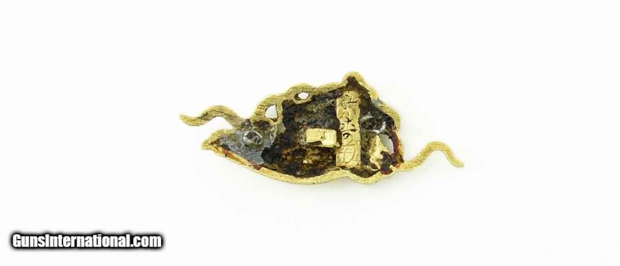 Description: "Kinko Menuki. Solid gold. Noh mask and fan. Tanto size. Very good quality. Unusual subject matter. SOLD |