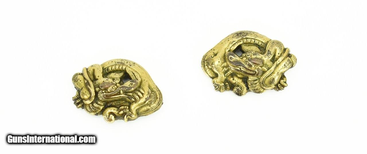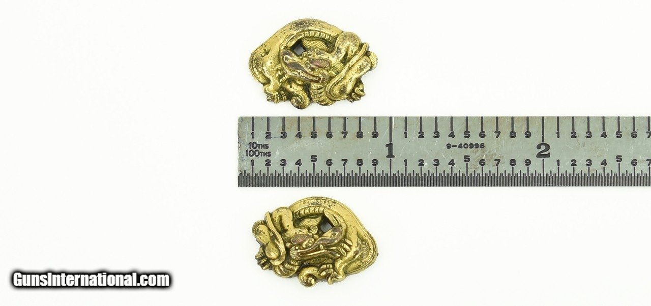 Description: "Kinko Menuki. Coiled water dragon. Copper with gold plate. Tanto size. SOLD |