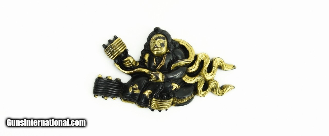 Description: "Kinko Menuki. Shakudo ground. Formed as star-crossed lovers. Orihime and Hikoboshi in shakudo and gold. Unsigned SOLD |