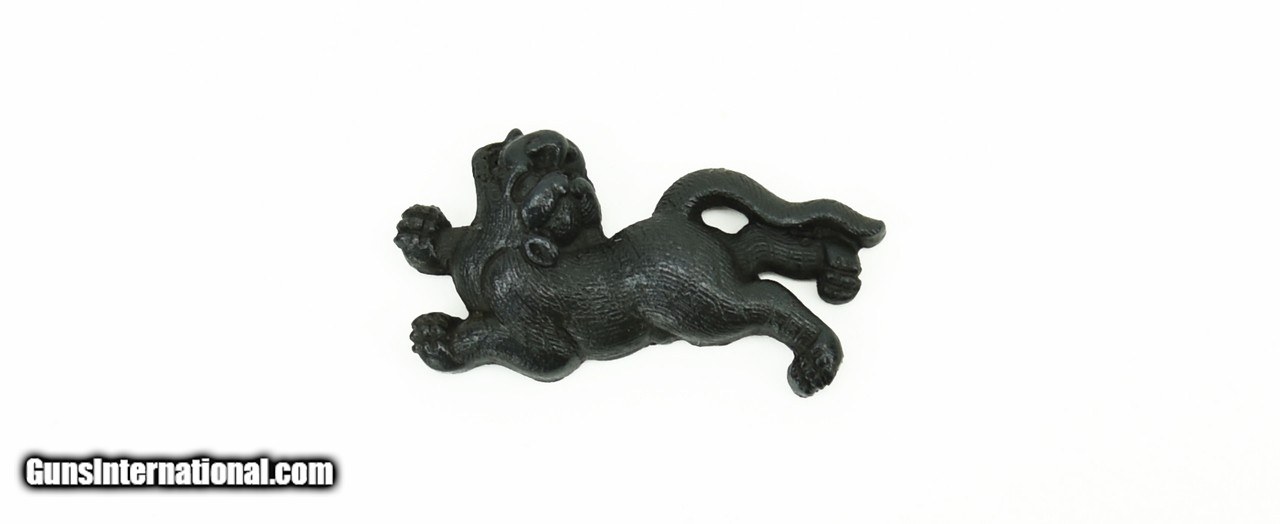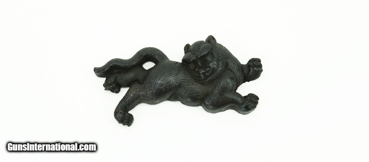 Description: "Kinko Menuki. Shakudo Shi-Shi with very fine detailed carving of fur. Unsigned. SOLD |