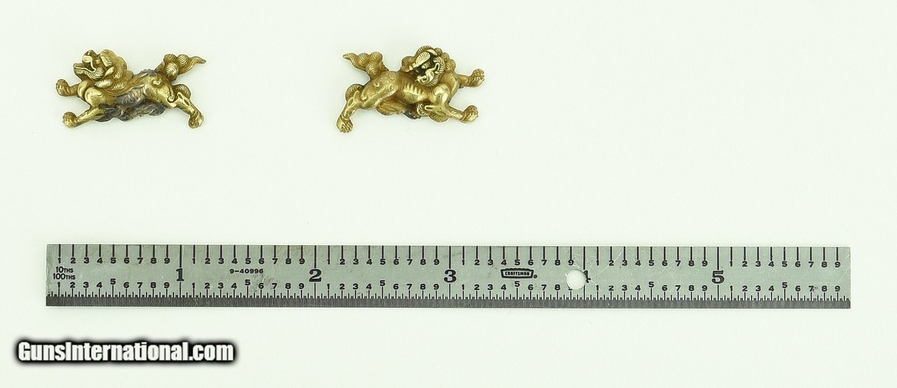 Description: "Kinko Menuki. Shi-Shi motif. Gold. Unsigned. SOLD |