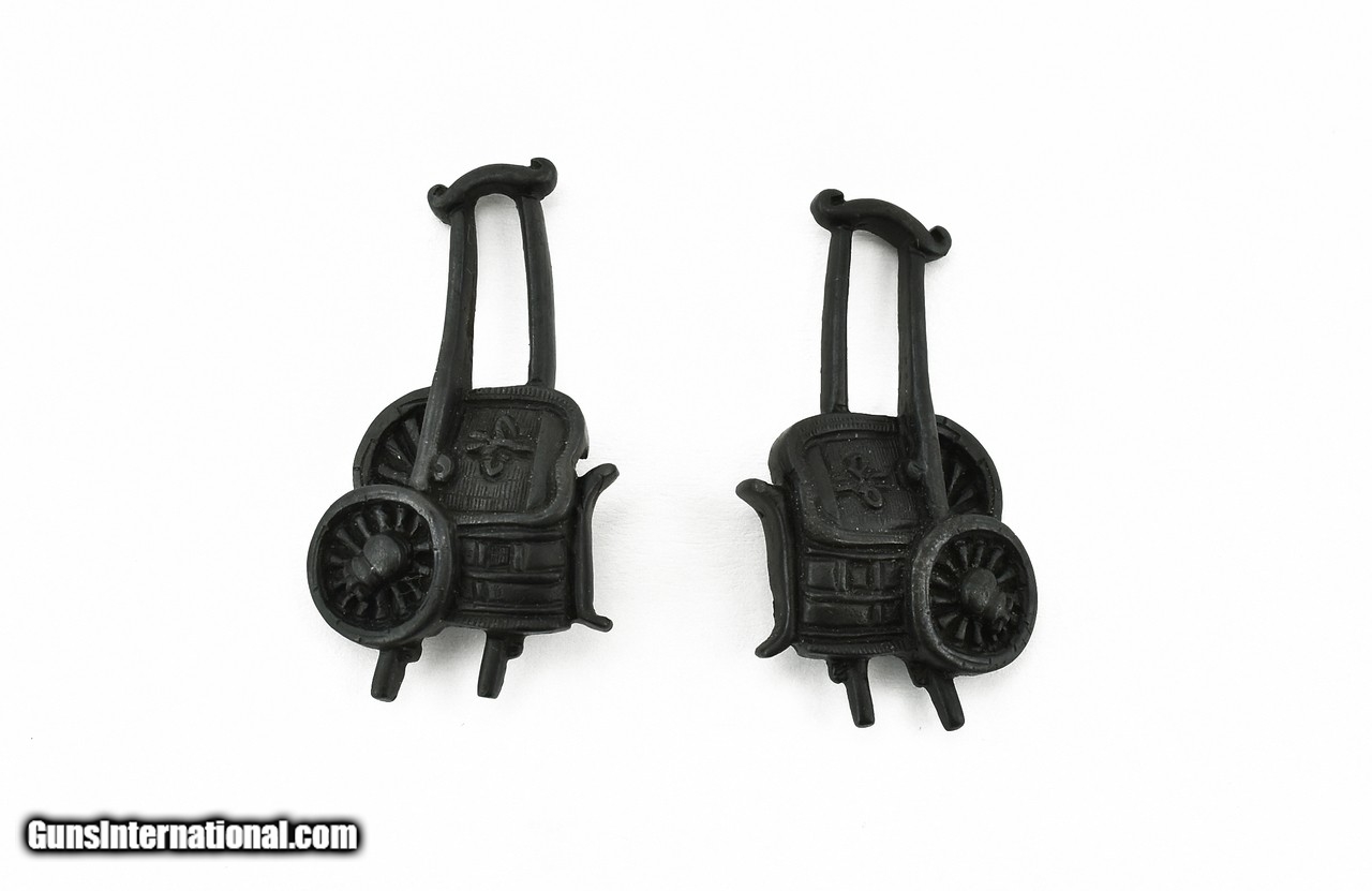 Description: "Kinko Menuki. Shakudo rickshaws. Unsigned. Rickshaws are very unusual subject. SOLD |