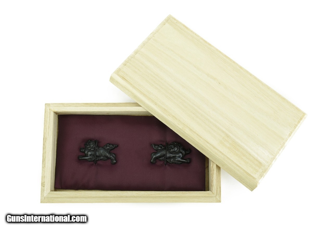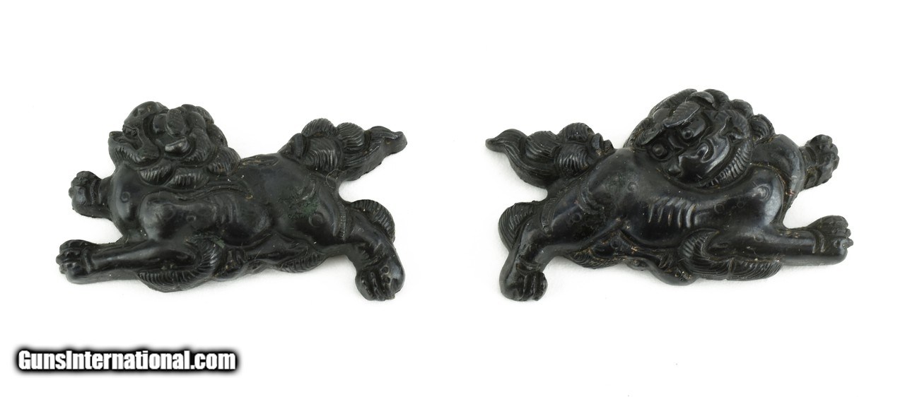 Description: "Kinko Menuki. Shakudo Shi-Shi. Katana size. Unsigned. Boxed. SOLD |