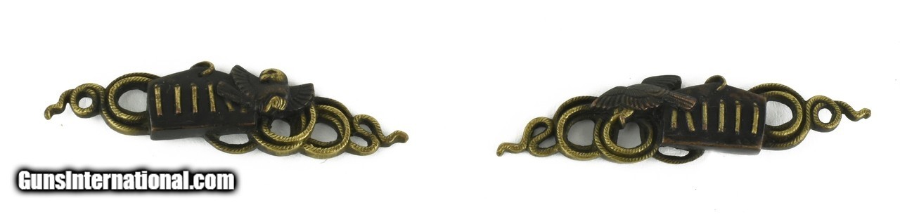 Description: "Kinko Menuki. Shakudo on copper depicting coils of rope in gold with a bird on each Menuki with copper. SOLD |