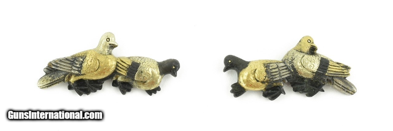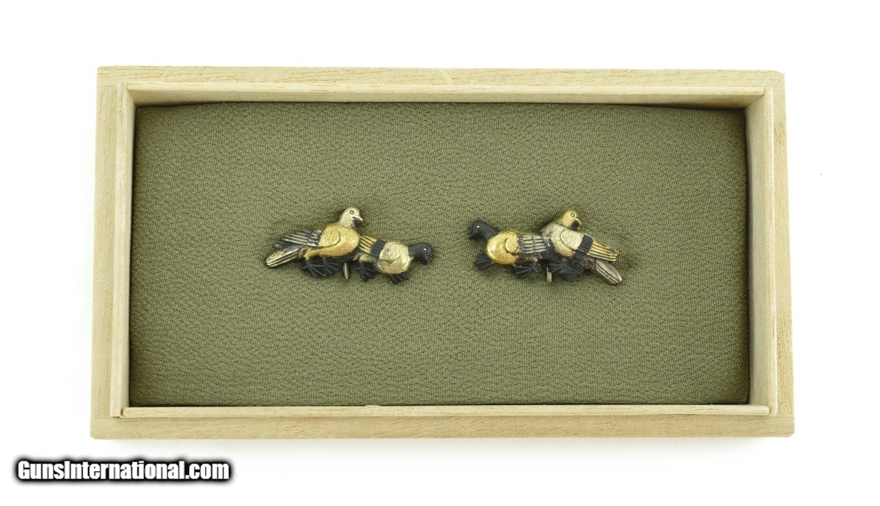 Description: "Kinko Menuki. Birds with gold, silver and shakudo highlights. Unsigned. SOLD |