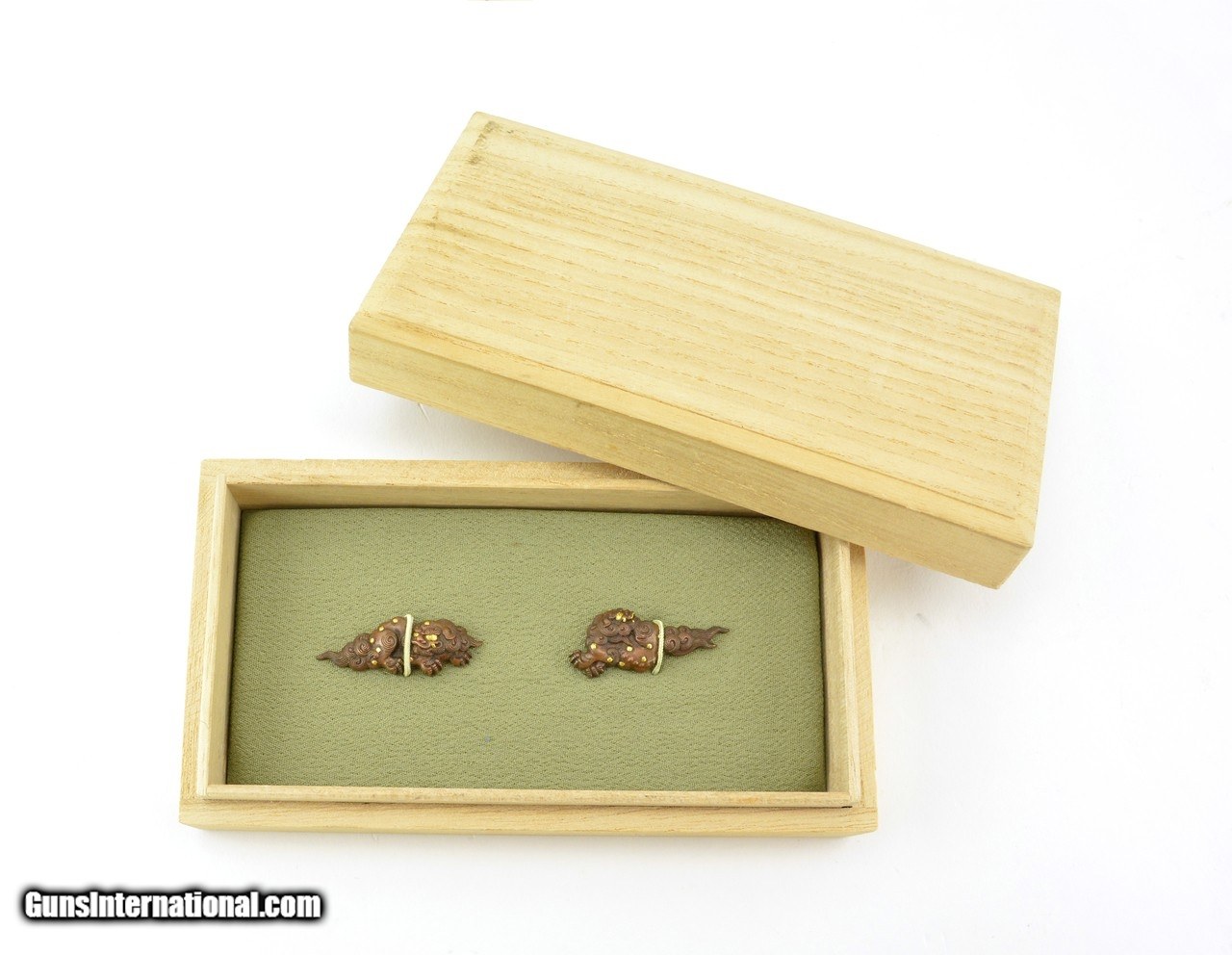 Description: "Kinko Menuki Shi-shi. Esquisite workmanship copper with gold workmanship. SOLD |
