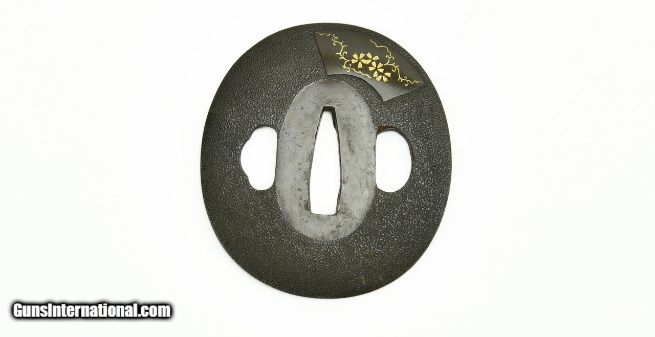 Description: "Kinko Tsuba, Foliage and Birds with gold highlights. 2 ¾", 6.9 cm. Excellent condition. SOLD |