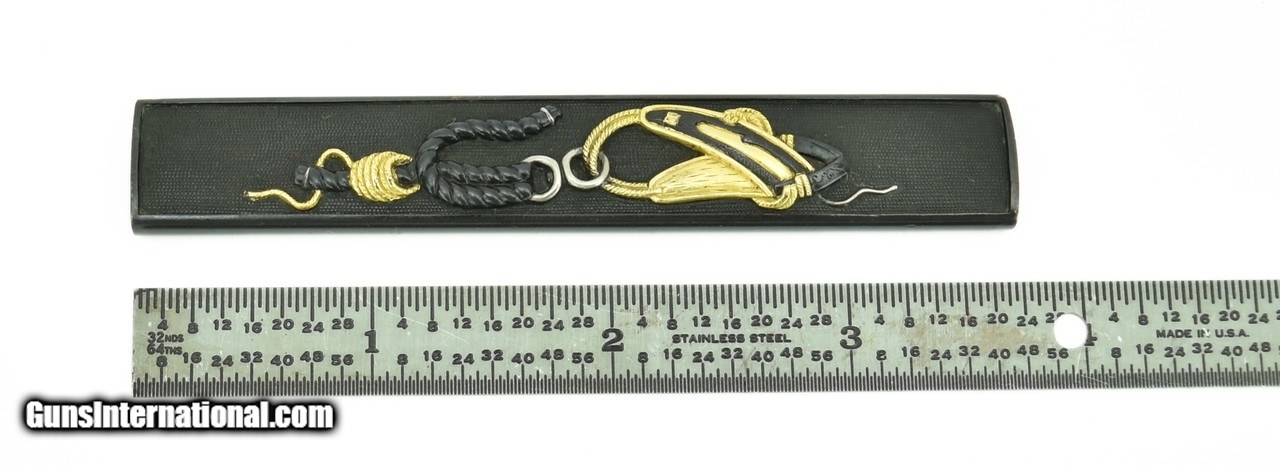 Description: "Kodzuka. Shakudo with fine Nanako. Motif of horse trappings. Signed: Goto Tsujo Saku eleventh Goto master (1663-1721). Excellent condition. SOLD |