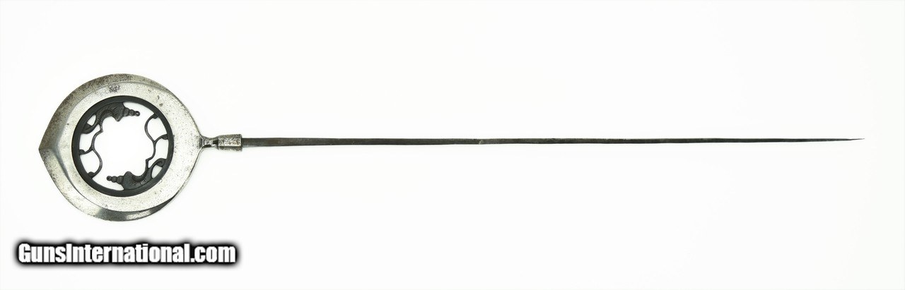 Description: "Large Presentation Arrowhead (Yanone) by Nobu Kuni Edo Period pierced with circular opening with design of conch shells and stylized waves signed: Nobu Kuni in Shirasaya 6 ½" (16.5 cm) long, 4 7/8" (12.3 cm) wide, 27 ¾" (70.5 cm) long overall. SOLD |