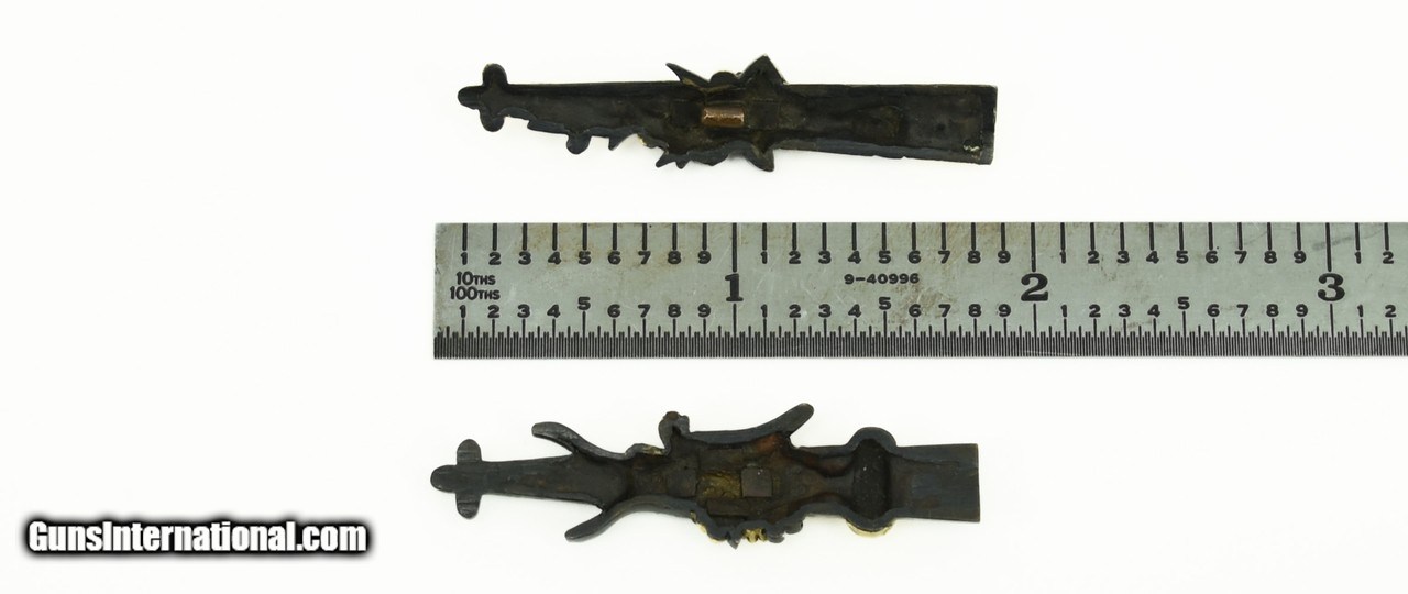 Description: "Pair of Menuki. Chrysanthemums with shakudo, gold, silver, and copper highlights. Unsigned. SOLD |