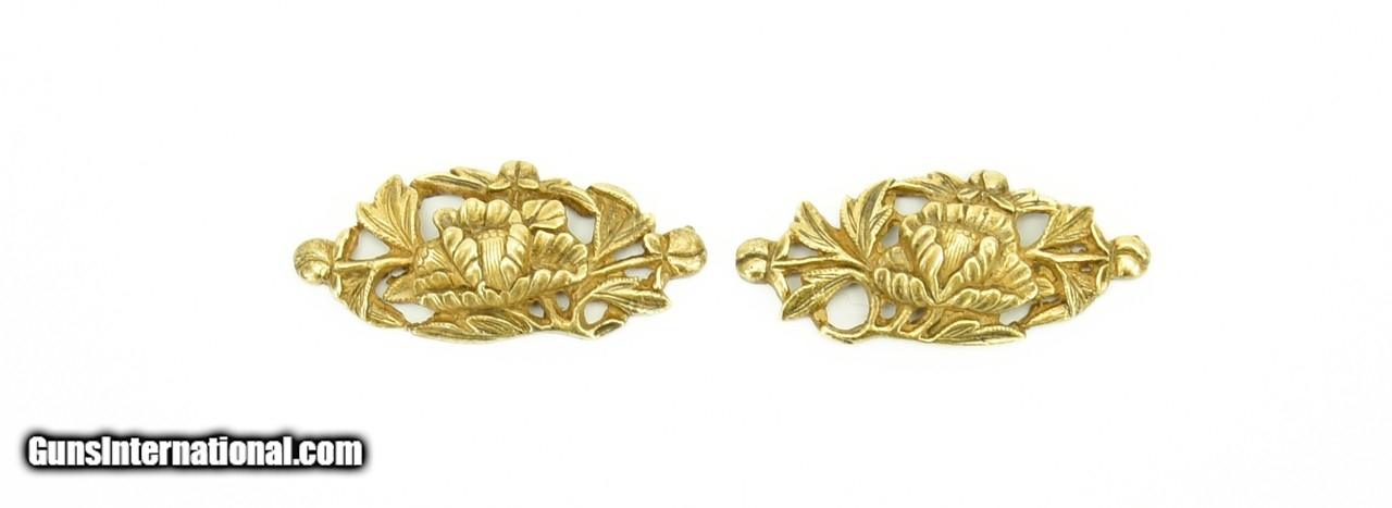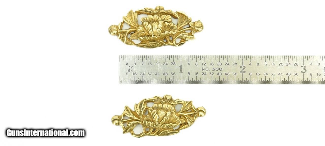 Description: "Pair of solid gold Menuki. Designed a two peonies and leaves. Edo period (19th Century). Katana size. SOLD |