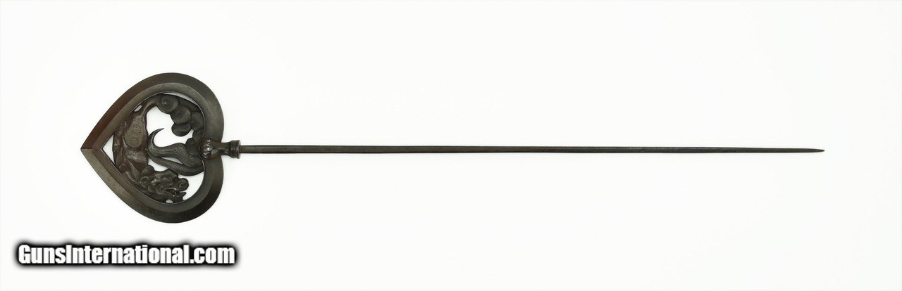 Description: "Outstanding Umetada School Sukashi Presentation Arrowhead attributed to Motoshige (Edo Period) 17th century pierced with design of Shishi in Shirasaya 3 5/8" (6.2 cm) long overall. Tang appears to be replaced. SOLD |
