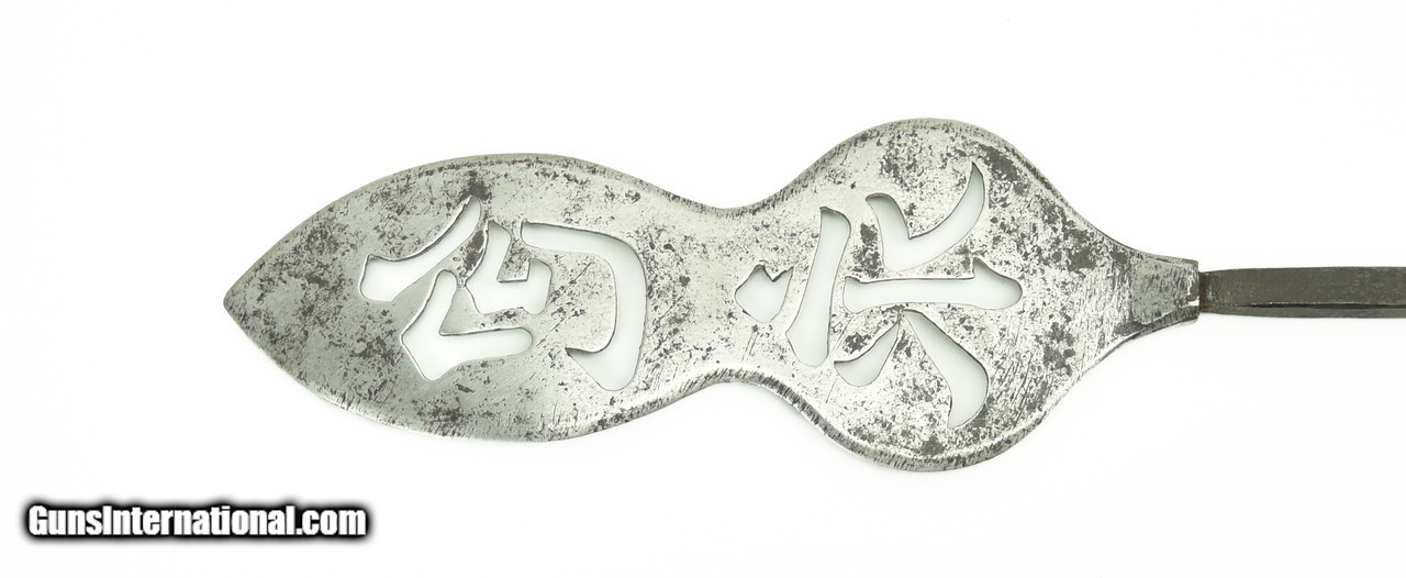 Description: "Unusual Sukashi presentation Arrowhead by Kane Naga. 18th/19th Century. Pierced with Kanji of the Smith’s name. No Shirasaya. 7" or 17.8 cm long, 20 1/8" or 51.1cm overall length. Ex- Paul Goodman Collection. SOLD |