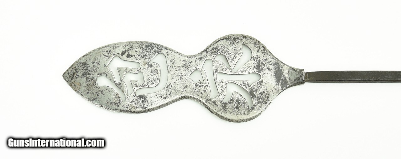 Description: "Unusual Sukashi presentation Arrowhead by Kane Naga. 18th/19th Century. Pierced with Kanji of the Smith’s name. No Shirasaya. 7" or 17.8 cm long, 20 1/8" or 51.1cm overall length. Ex- Paul Goodman Collection. SOLD |