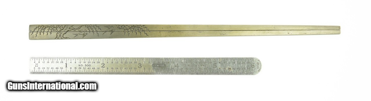 Description: "Wari-Kogai. Ferns with tree and birds. Appears to be Shibuichi in custom box. Excellent condition. Rare and elegant Wari-Kogai. SOLD |