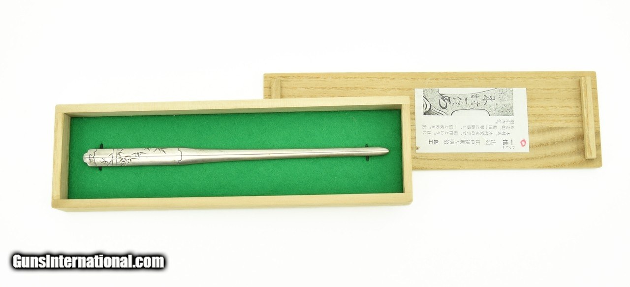 Description: "Waribashi. Bamboo stalks with fronds. Shibuichi. Signed Ichiju (1835-1903). Student of Goto Ichijo. Excellent condition. SOLD |