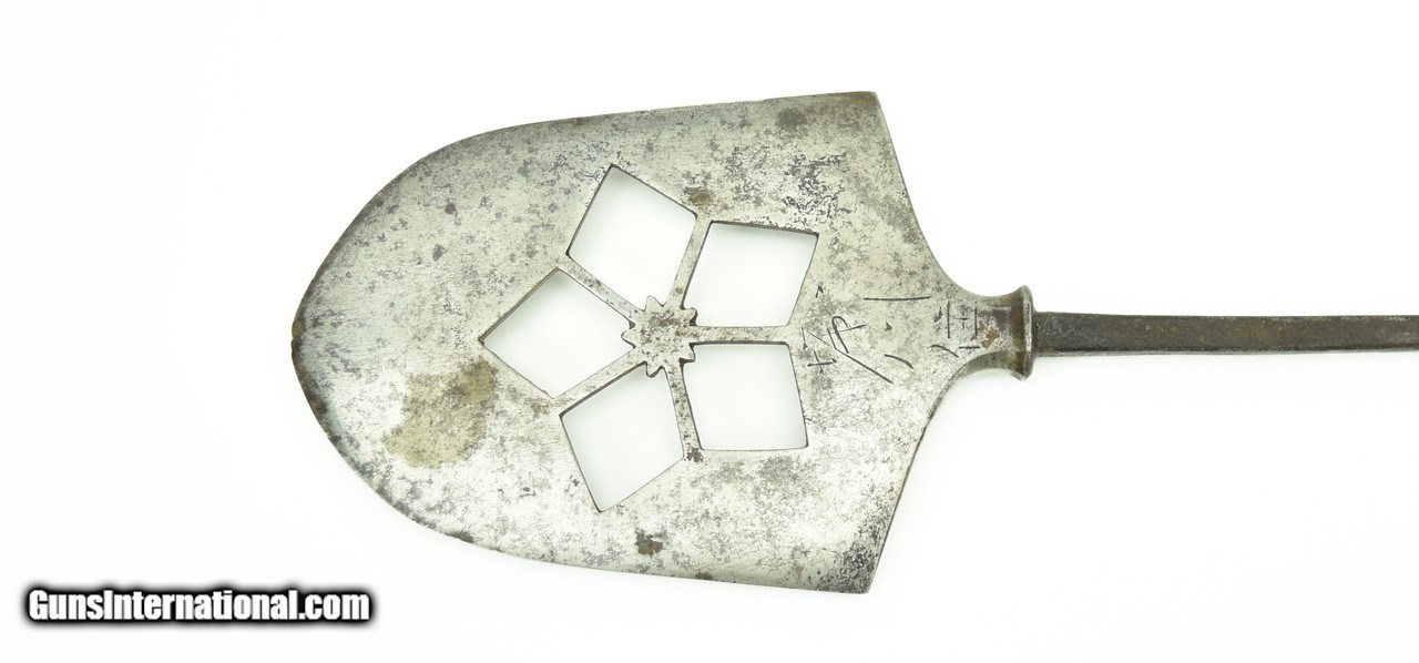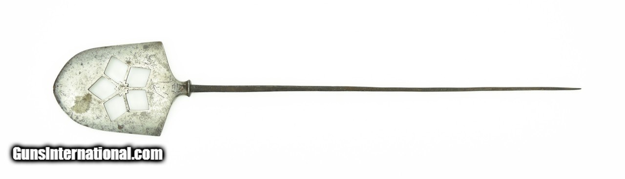 Description: "Yanone (Arrowhead). Sukashi presentation. Fine pierced design of cherry blossom. Signed on shoulder Horikawa Kuni Hiro. (17th Century). 4 ¼" (10.7cm) long overall. SOLD |