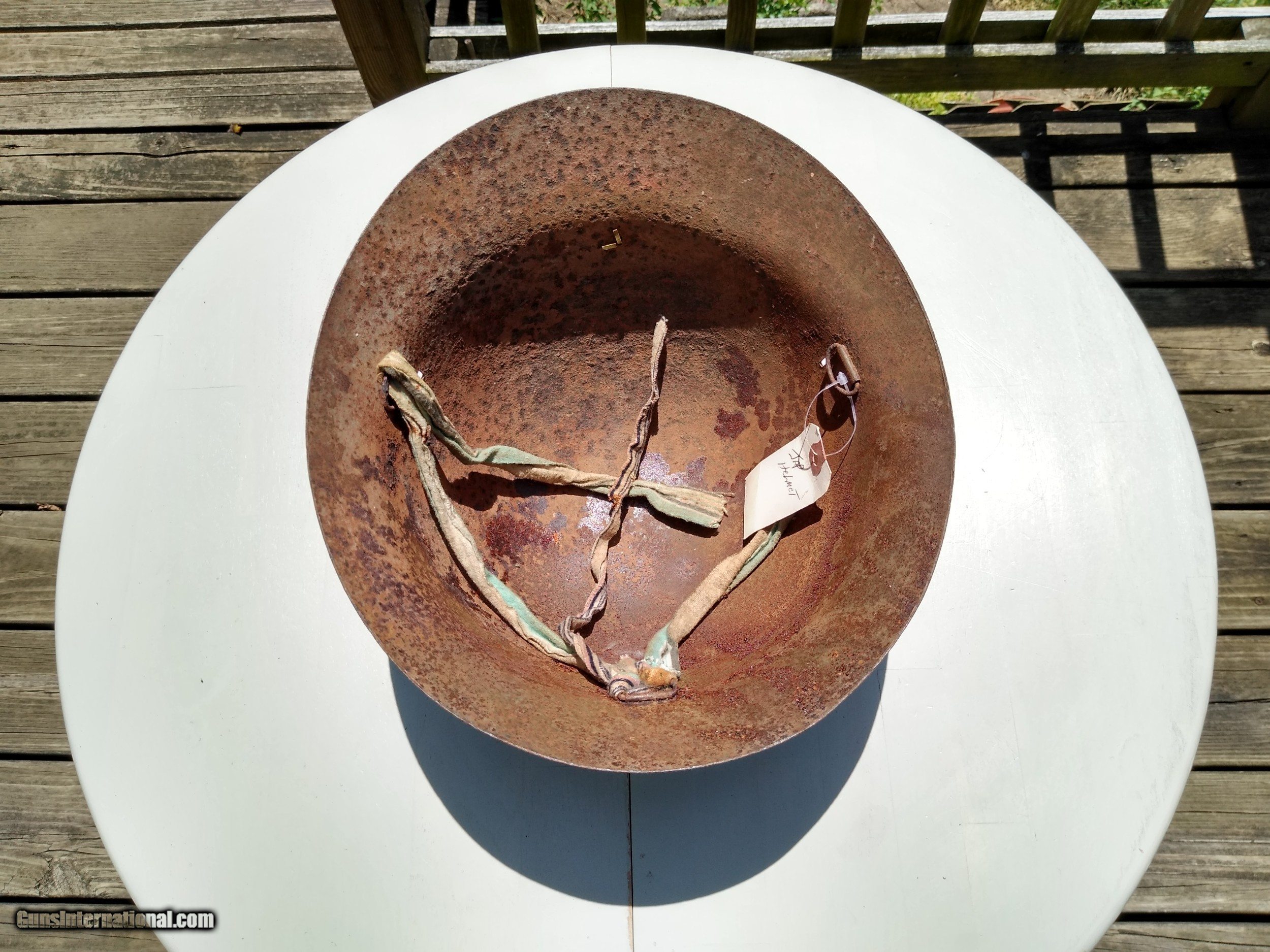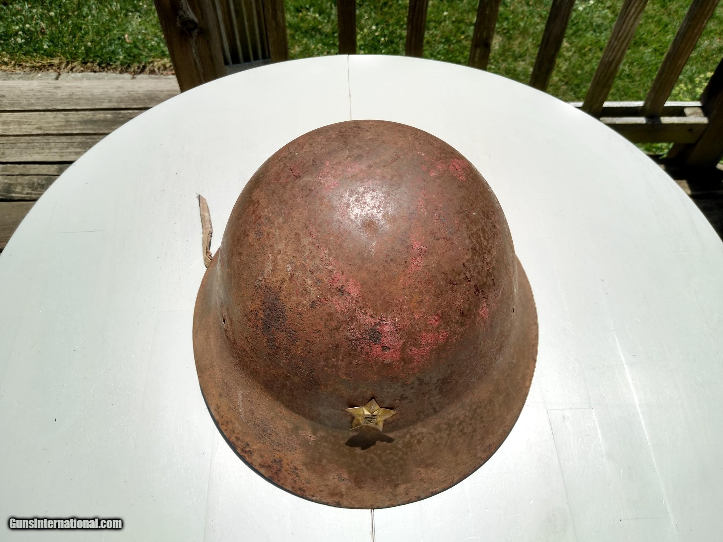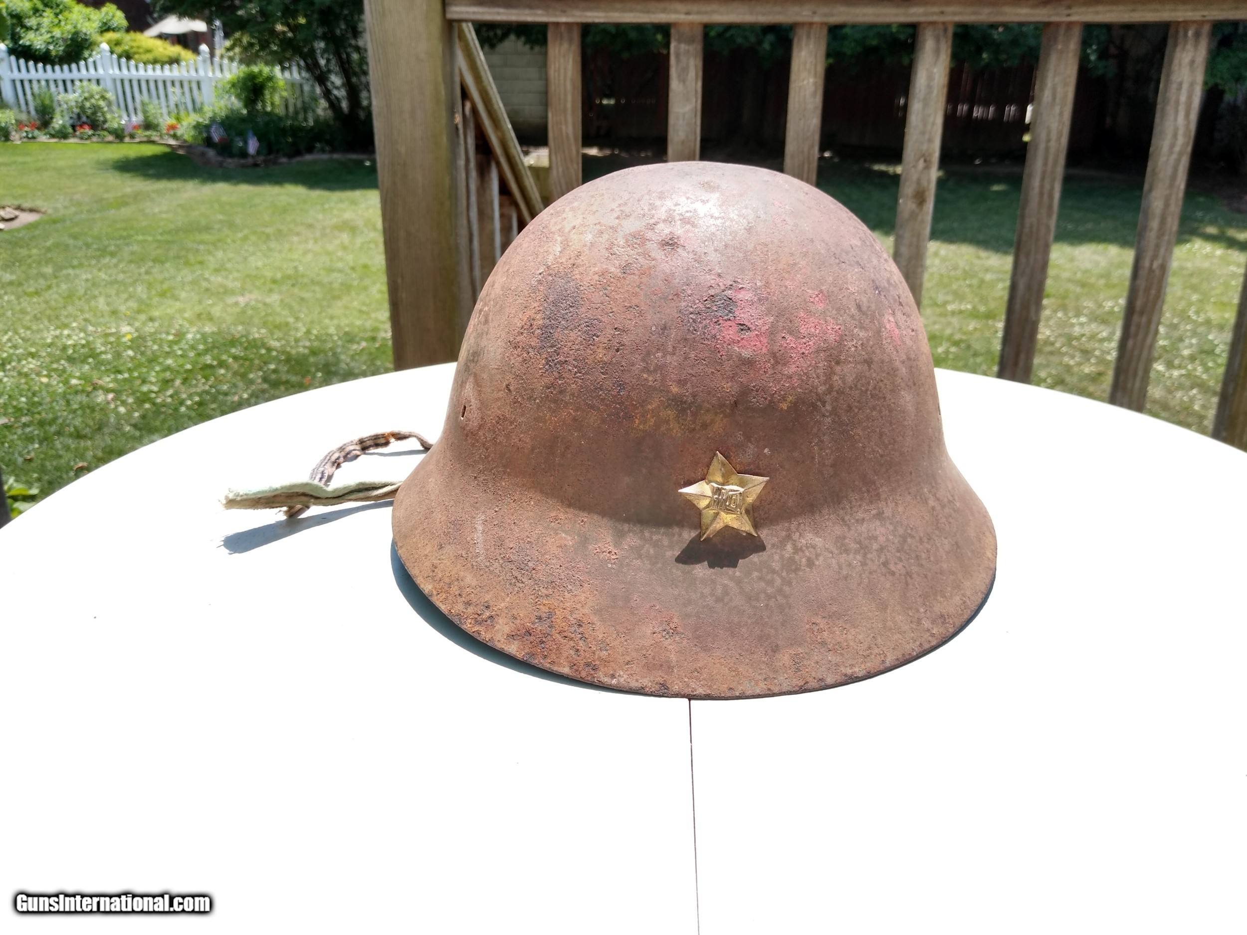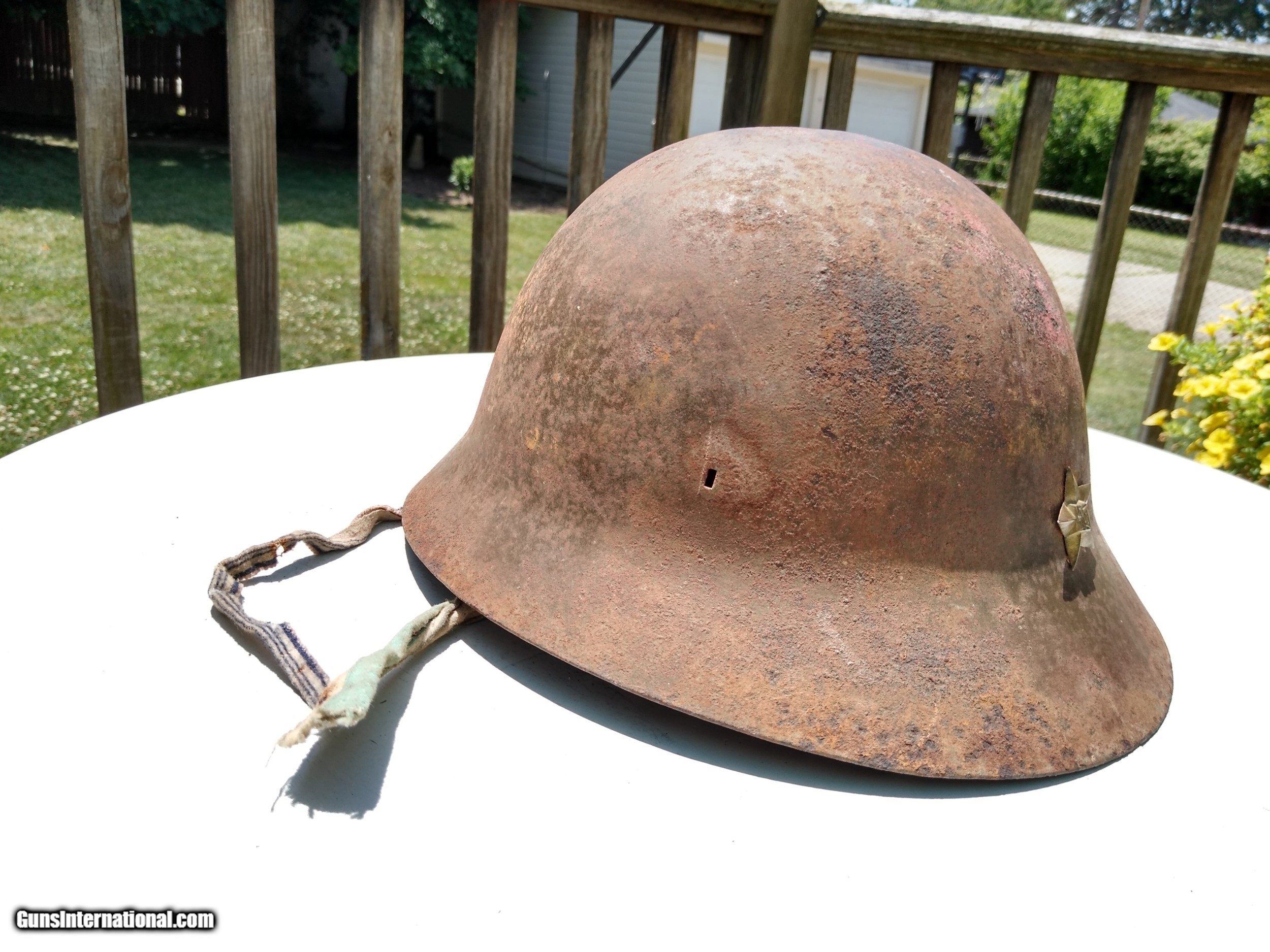 Description: Honest example of an original japanese WWII helmet with straps and no liner SOLD |