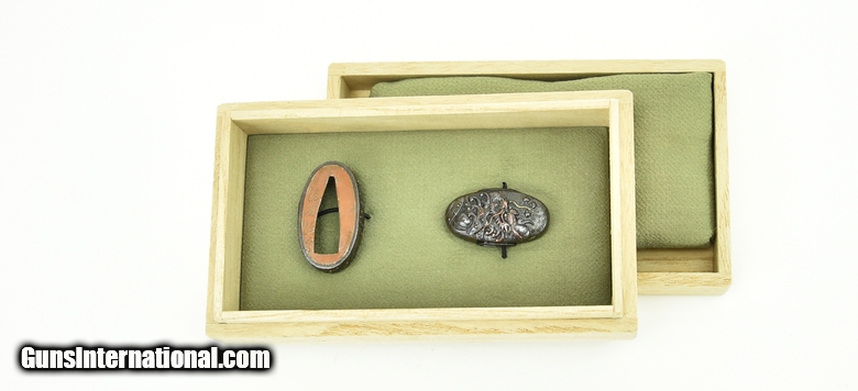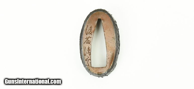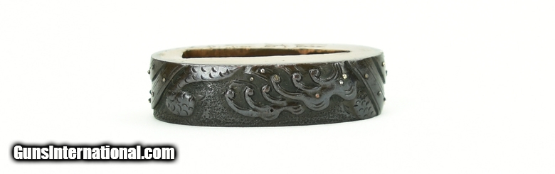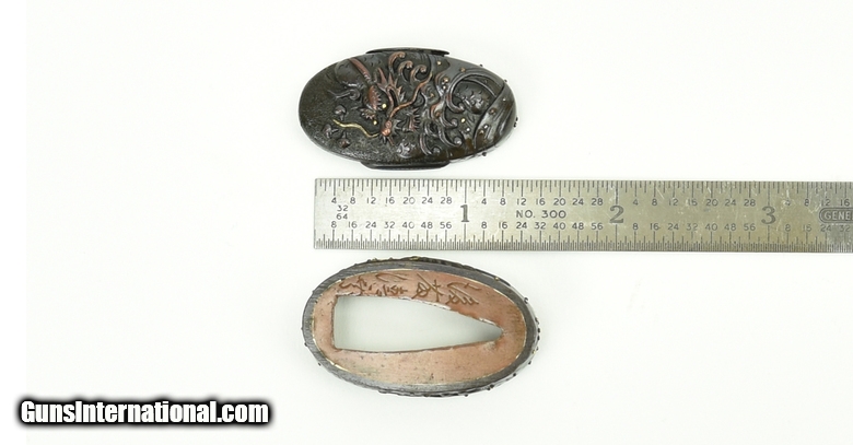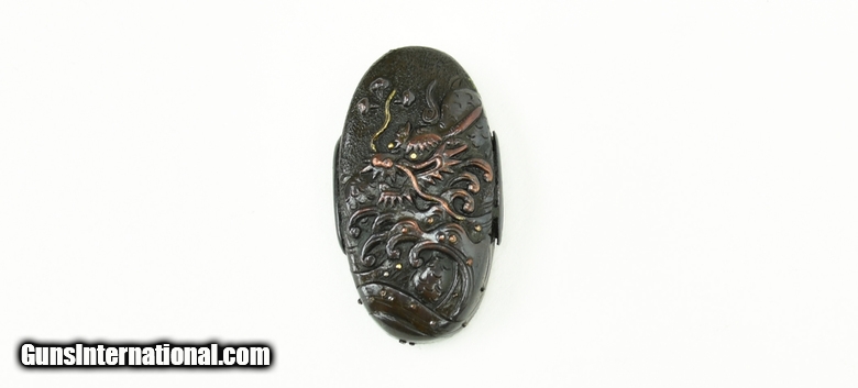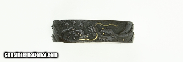 Description: Kinko Fuchi Kashira. Dragon in turbulent waves. Gold highlights. Signed: Goto. Very good condition. SOLD |
