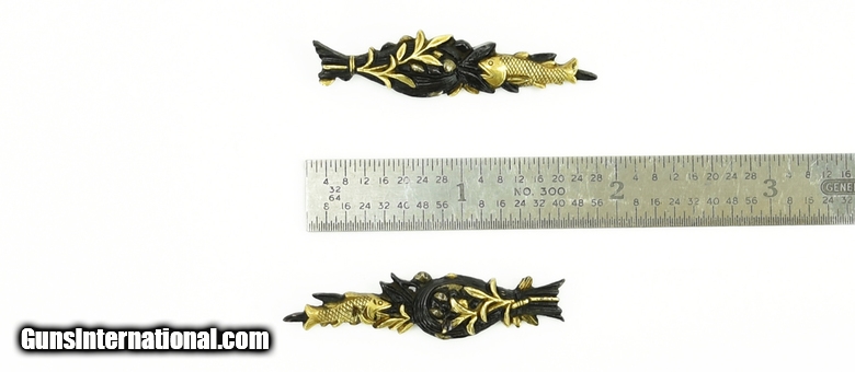 Description: Kinko Menuki. New Years Bundles with Fish with gold highlights. Unsigned. SOLD |