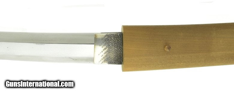 Ubu Mumei Koto Bizen Katana. This is a ubu (unshortened) mumei (unsigned) Koto Bizen Katana in full polish. The nagasa (cutting edge) is 23â…ž” (60.5cm). It is in old shirasaya with a silver foil habacki.