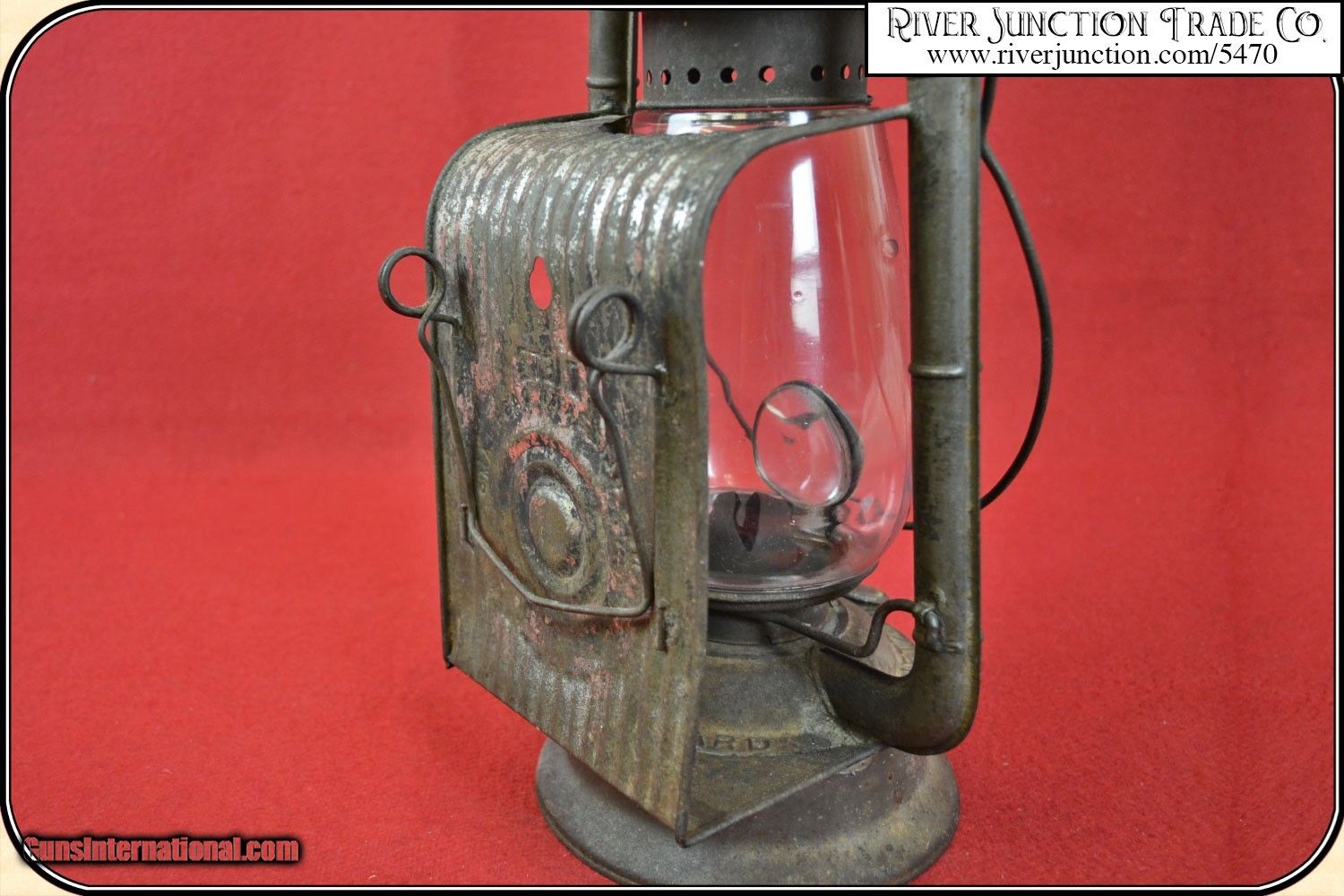 Description: Antique Dietz Lantern This dash lamp stands 15" in height. It has the original globe in perfect condition and a No. 2 steel burner which takes a 1" wick. The bulls eye reflector is about 4 in. and the convex lens is 2 3/4 in. diameter. It has an internal crack but is stable and would still focus a bean of light. Talk about "CHARACTER" in an old lantern! The lantern body appears to be in good condition with no dents in the canopy as most have. There is some surface rust, but would clean up better. The bottom has no dents or holes and the rear buggy clip is in perfect using condition. This lantern is in as found condition, but would clean better for you collection, if you like. It stands 15 in. tall and 6 1/2 in. in diameter at the base. Made by Dietz Co. New York in the late 1800s and marked "DIETZ" A very rare and hard to find LANTERN. I have found only one other for sale and the price is $510.00 and it is bad rusty. These were clipped on the dashboard of your buggy or wagon and also over the top board of stalls in the barn. Payment: Item, can be ordered on line with a credit card or paypal on our sight. Just Google (riverjunction) and type in the River Junction Trade Co. item number (5470) in the search box. Before you checkout you will see shipping cost and total. OR If you prefer: Pay by cash, postal money order, cashiers check, personal & business checks. We wait for checks to clear. We always answer questions and entertain offers. Have questions? Call me 563-880-4588. Jim SOLD |