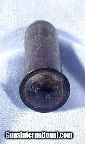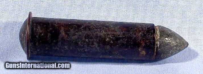 Description: ,56 Cal, Billinghurst Cartridge for Civil War Machine Gun. Sold as Collectible/Display Ammunication and not intended to be used in guns. You assume full responsibility for use. SOLD |