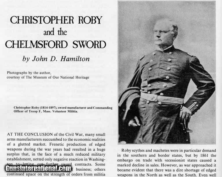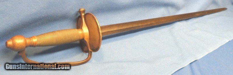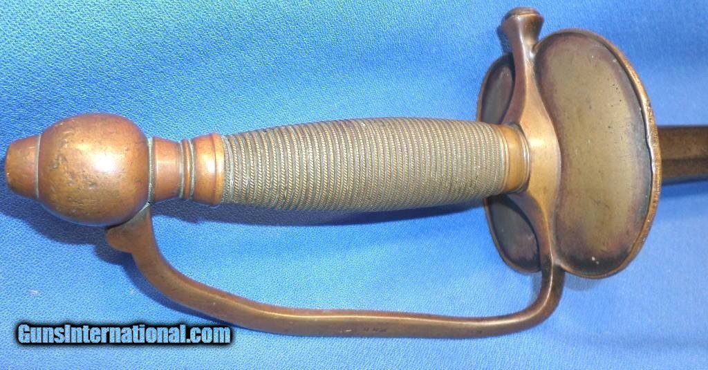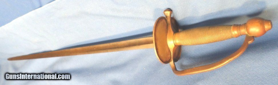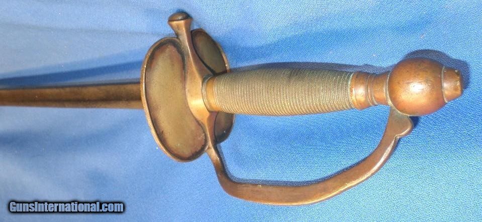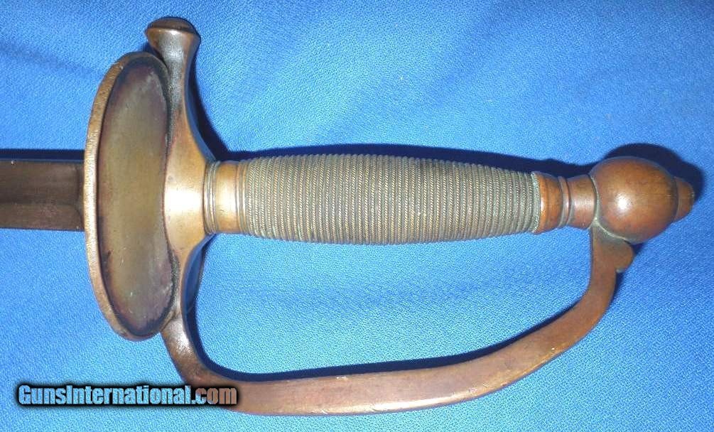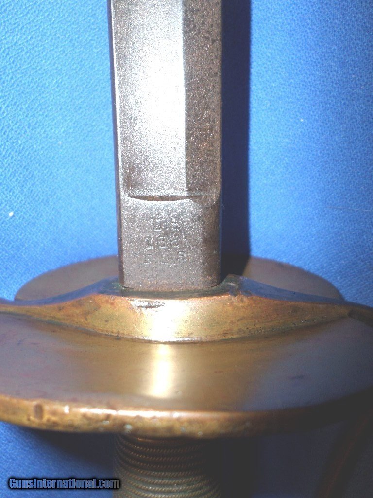 Description: ANTIQUE MODEL 1860 CIVIL WAR NCO SWORD HORSFORD DATED U.S. 186?. F.S.S INSPECTORS MARK. MARKED "ROBY" "CHELMSFORD.MSC" ABOUT 38 1/4" OVERALL WITH 31.1/2" BLADE FINISH MOSTLY A DARK PATINA SURFACE WITH BRASS HANDLE UNCLEANED PATINA SHOWING GUARD ALTERATION FOR EASE OF GRIPPING S&H $30.00 EAST or $40.00 WEST OF THE BIG RIVER. DIRECT TO BUYERT ANYWHERE THAT'S OK EXCEPT CALIFORNIA. C. CARD ADD 4% SOLD |