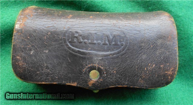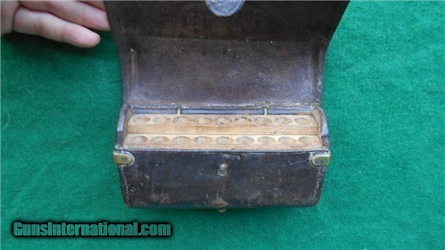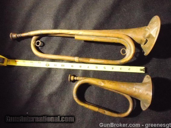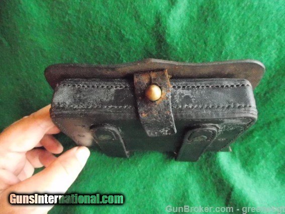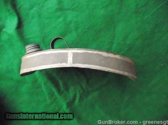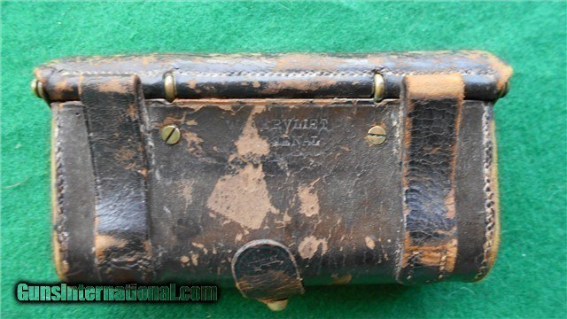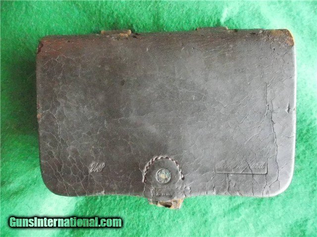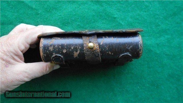 Description: ***Indian War...R.I.M. Cartridge Box***............................... (RHODE ISLAND MILITIA)...STAMPED WATERVELIET ARSENAL,...Great Condition. Minor flaking. SEE MY OTHER S AND COMBINE SHIPPING! qq1-5.........................................................***Revolver Cart. Box***.............................: Marked J. Davy & Co. Newark NJ, and TG Shepard. Very Good condition! ...Both loops and latching loop in very good to fine condition. Box is 6 1/4" x 4 1/2".... 2 stitches separated at upper LH corner of inner box. Very attractive .44 cal cartridge box!.......Greg HH1-8.....................****2 Brass Bugles****................... 19th Century One Civil War Era, the other late 19th Century. Both have seen better days. The small one is around 9 1/4" and the larger one is about 18". The shadows from the photo, makes the large one look like it has a hole, it doesn't. It is missing a section of tubing. The smaller one is complete......a116-119.......................................****UNUSUAL Pat. Mar. 30, 1872 Curved Canteen...HOSPITAL, hot water bottle****................................. 10" x 1 1/4"... It has a RAISED CROSS, Screw Lid and a handle. The lid has another Pat. date of Mar. 30th 1858. That was the year, screw lids were invented for Mason Jars. The fact that it is curved would cause me to believe it was filled with warm/hot water, and apply to the stomach. If anyone can shed light on this, please let me know. 10/18..........................***3 Early Bayonets***.........They don't fit any Civil War muskets, they are too small. One has a tag that says: "Foreign 1853". But is smaller than the m1853 Enfield (20 1/2"). Another has a tag that says: "Belgium". (17 1/2") and the 3rd has no tag and is likely 18th sentury (18")............S/H $27 NO PAYPAL. SOLD |
