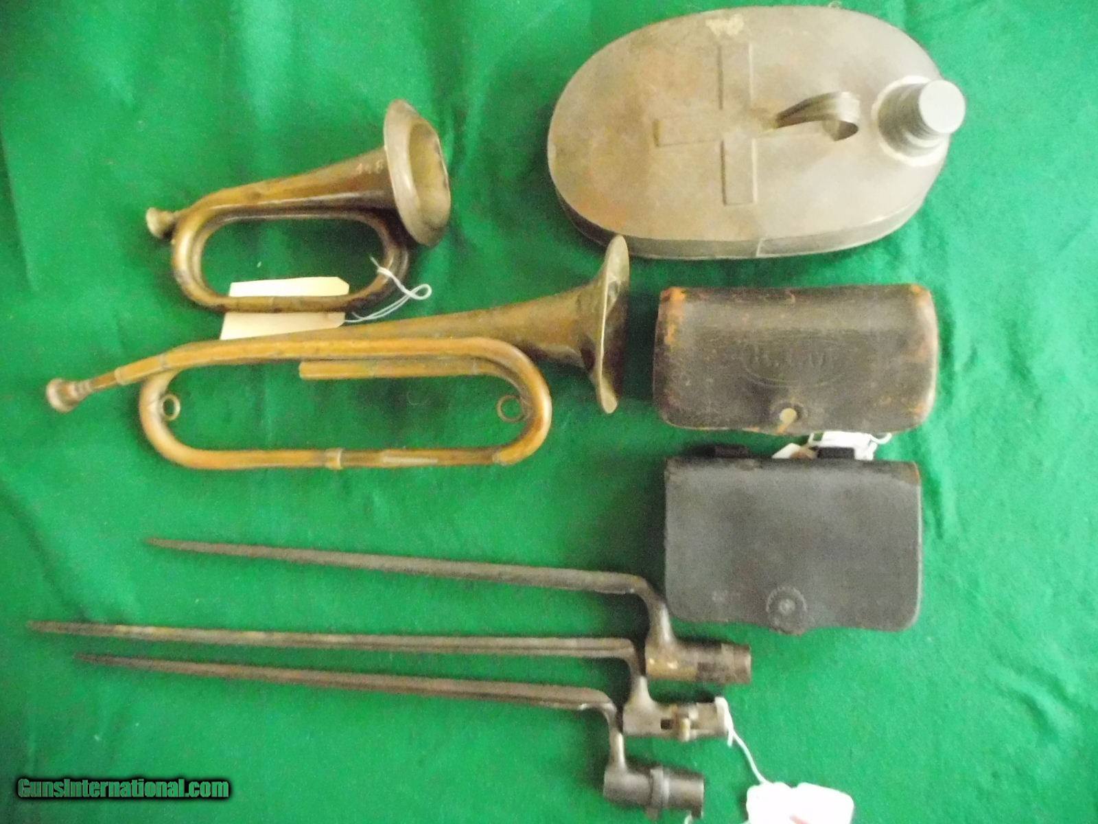 2 Revolver Cart. Boxes...2 Relic Bugles...1872 Hosp. Canteen ...&...3 18th-19th Century Bayonets