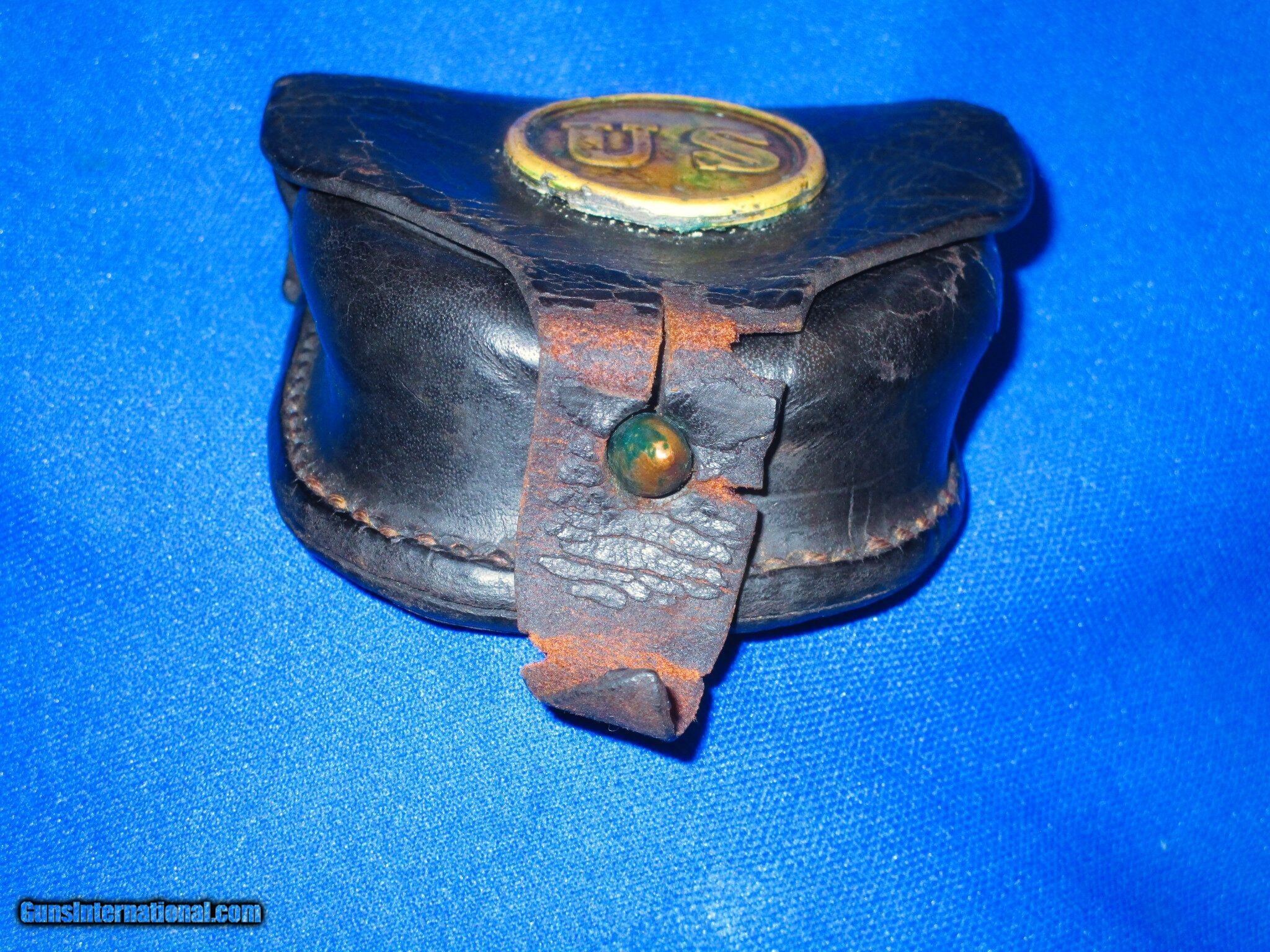 A Very Early & Scarce Civil War Confederate Cap Box With A Pre War "U.S. Rosette" Attached To The Front Flap