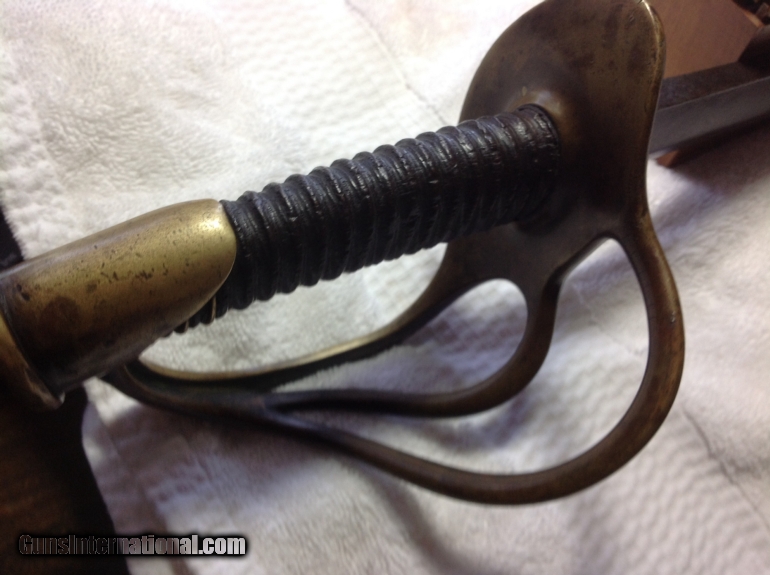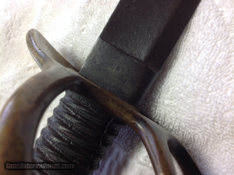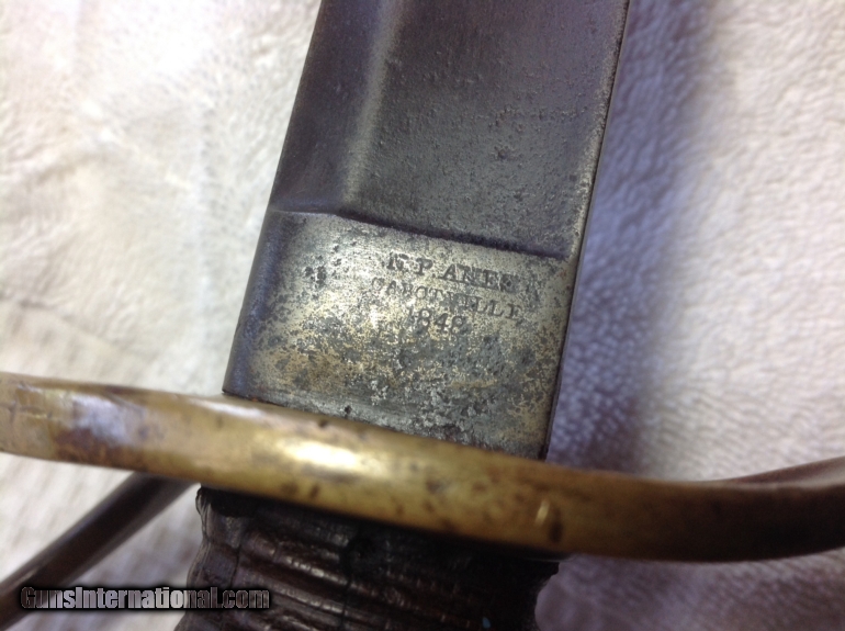 Description: Cut Down RARE Ames-Produced Model 1840 "Wristbreaker" Cavalry Sword (Dated 1848) Exactly 20" long Blade ( Double-Edged near the tip!) Exactly 24" Total Length Legible "AMES" maker-markings, "US", Martial Inspection Stampings (on Ricasso and Pommel), clear "1848" Production Date. Chocolate smooth patina. No leather wrapping remains. There isn't a collector, enthusiast, nor historian alive who doesn't know just how desperate the South was in equipping it's Forces. Among the many such examples, we have here a a rare specimen--and likely piece of Confederate ingenuity. The already Rare and desirable Ames-produced Model 1840 "Heavy Cavalry Saber", being dated 1848, bears ALL the legible markings for an Ames-produced sword ("US" with martial inspector's initials on the ricasso, with the Ames address and production date, then the other two distinct martial inspector initials upon the top of the pommel). Being already 13 years old when war broke-out (and the Model 1840 saber was the most widely used of the Confederacy, since they were already in production since 1840, and filled within Southern state arsenals and militias). "Wristbreaker" Heavy Cavalry Saber cut-down to exactly 20" blade, With a double edge from the tip to several inches in the blade. Nothing is broken, damaged, repaired, and it's 100% tight. A typical Confederate piece. SOLD |