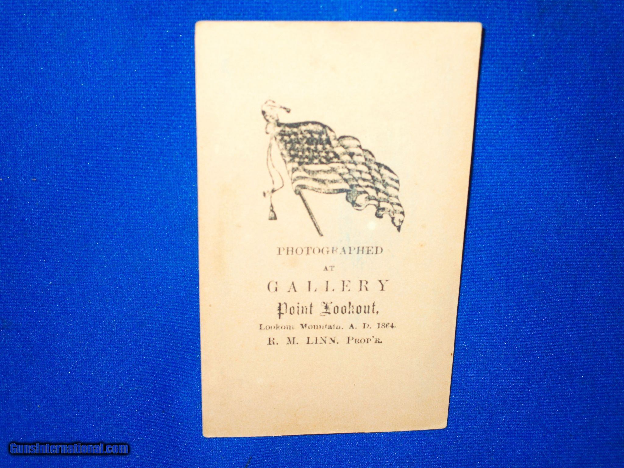 Description: An 1864 Dated CDV of Lookout Mountain By "R.M. LINN" In Very Nice Untouched Condition. All original & Complete. The image is fine throughout as shown in the photos with no tares or damage to it. It has a very clear American Flag & back mark on it. It is dated 1864. This Is a Very Fine Example Of An 1864 Dated CDV Of Lookout Mountain By "R.M. LINN". It Would Look Very Nice In Any Collection! Price: $250.00 Contact Seller |