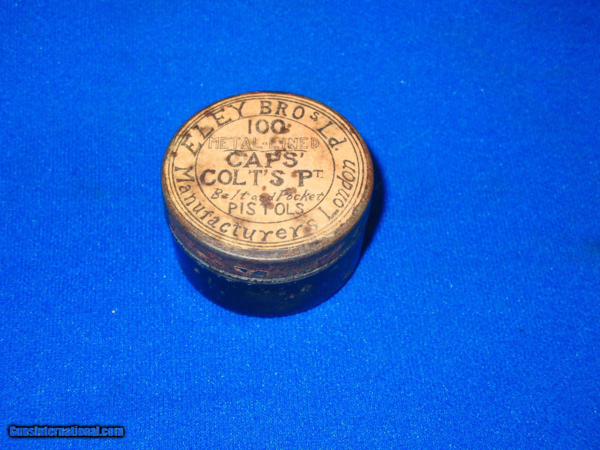 An Early Civil War "Colt's Patent" Marked "Eley Bros." 100 Count Cap Tin In Fine Untouched Condition!