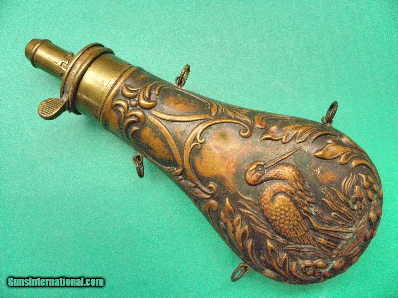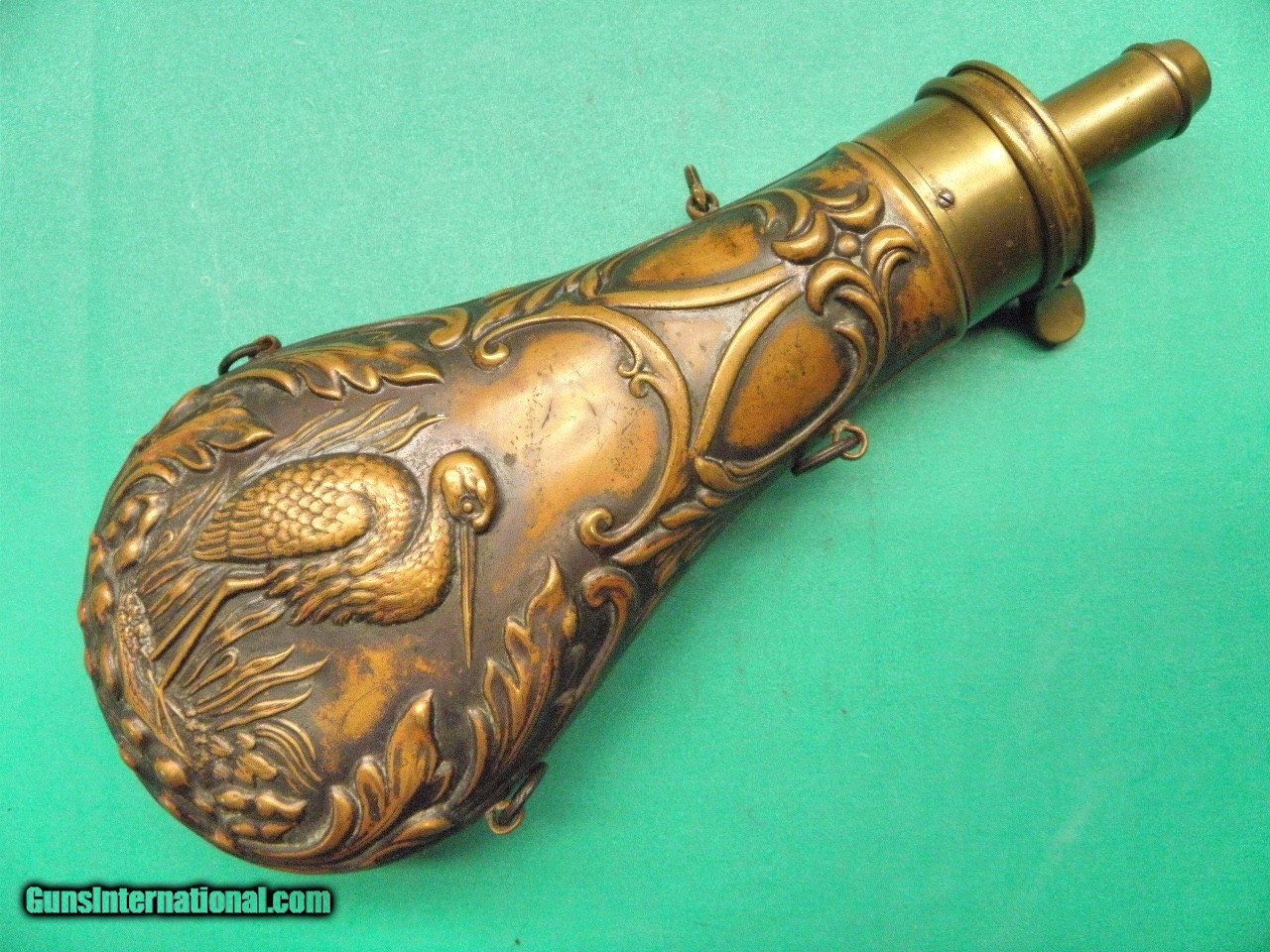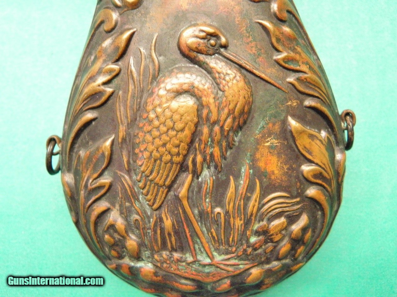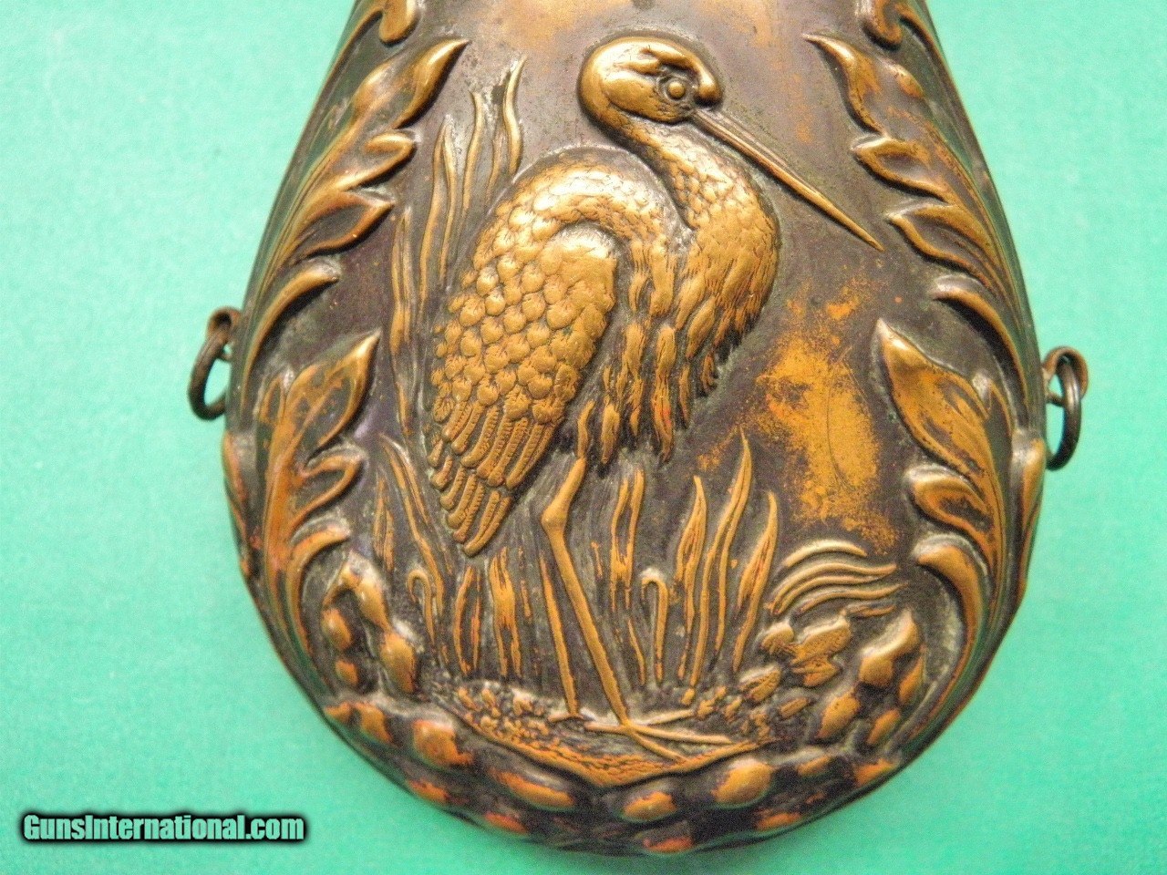Description: Original Mid 1800’s C-W era Antique American Flask & Cap Co. Southern Swamp - Marsh Bird Flask in Excellent Condition No Dents or Damage just Un-Touched Patina. The Body is 7” tall with 1&1/4” Adjustable Spout, It has Southern Swamp-Marsh Bird Motif looks like a Egret........ USPS priority insured Shipping lower 48 $12.00 the PO have as of Feb 2022 upped the Priority mail rates. SOLD |