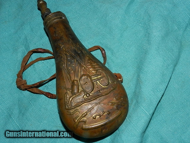 BRASS POWDER FLASK CIVIL WAR DESIGNS