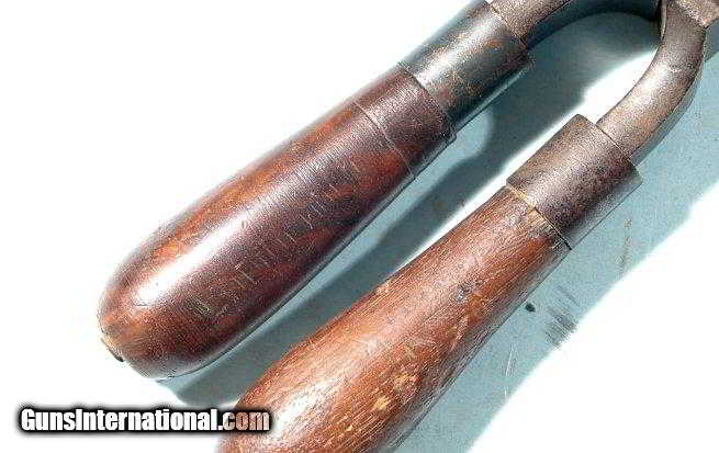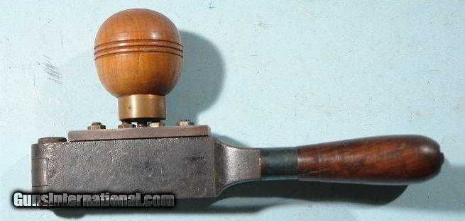 Description: CIVIL WAR 4 CAVITY .58 CAL. U.S. RIFLE-MUSKET GANG MOLD. Very good with some salt and pepper on outside but perfect cavities. Original handles. Some original blue on ferules. Cavity plug probably mid 20th century. Scarce mold. SOLD |