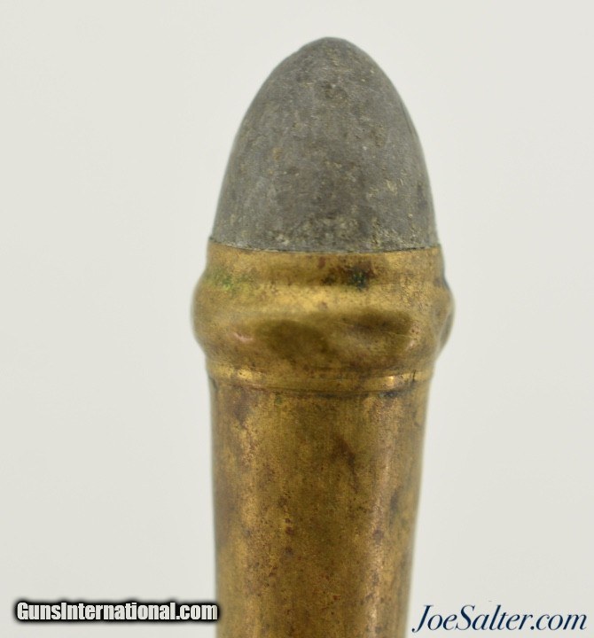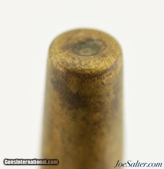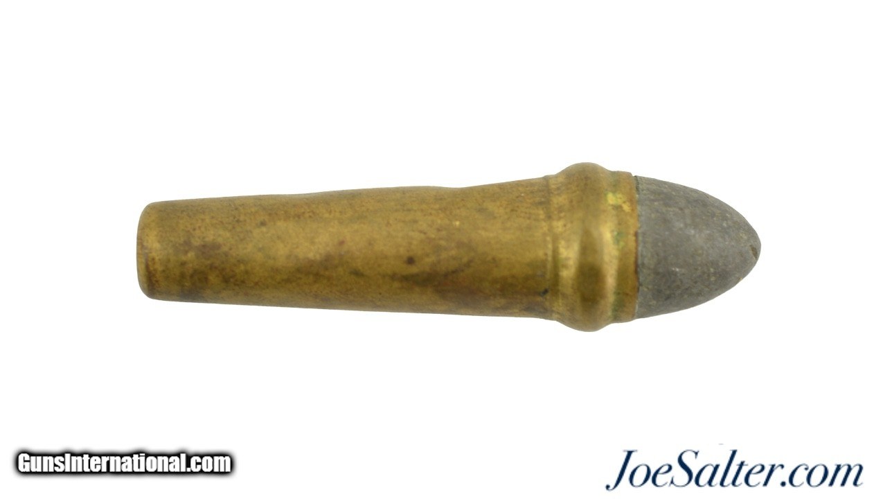 Description: This is the .54 caliber Burnside metallic cartridge for the Burnside carbine. The scarce one piece, brass cone shaped cartridge with round nose lead bullet is in excellent condition and comes loosely mounted on a small card with identification. A great item to display with your Civil War carbine or to complement your cartridge collection Price: $135.00 Contact Seller |