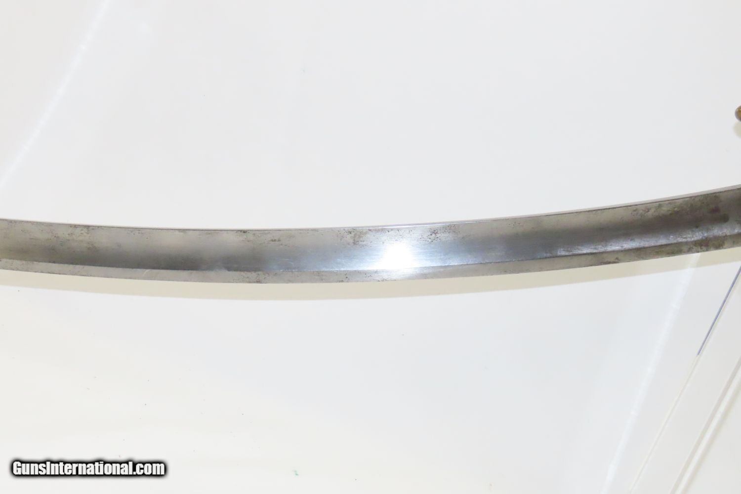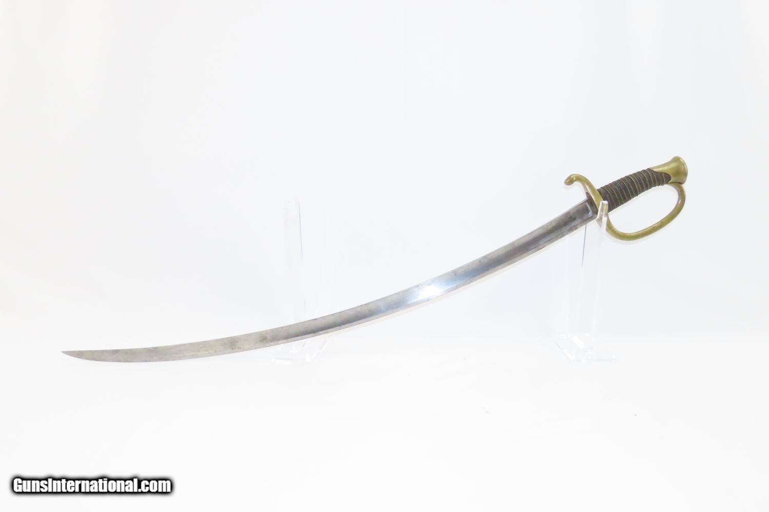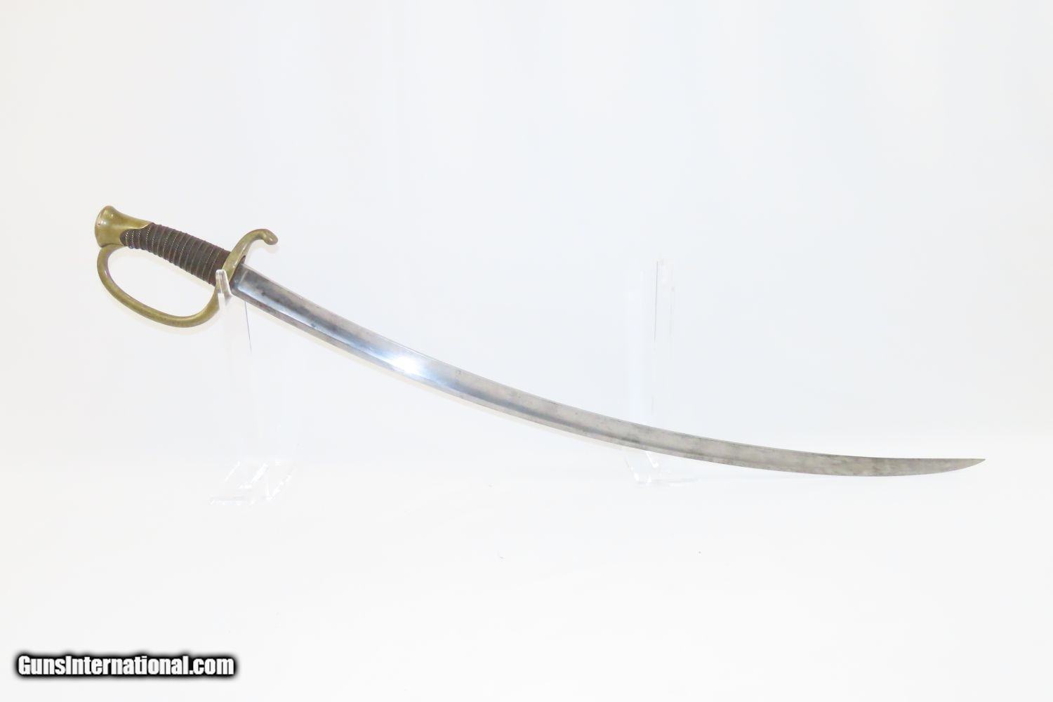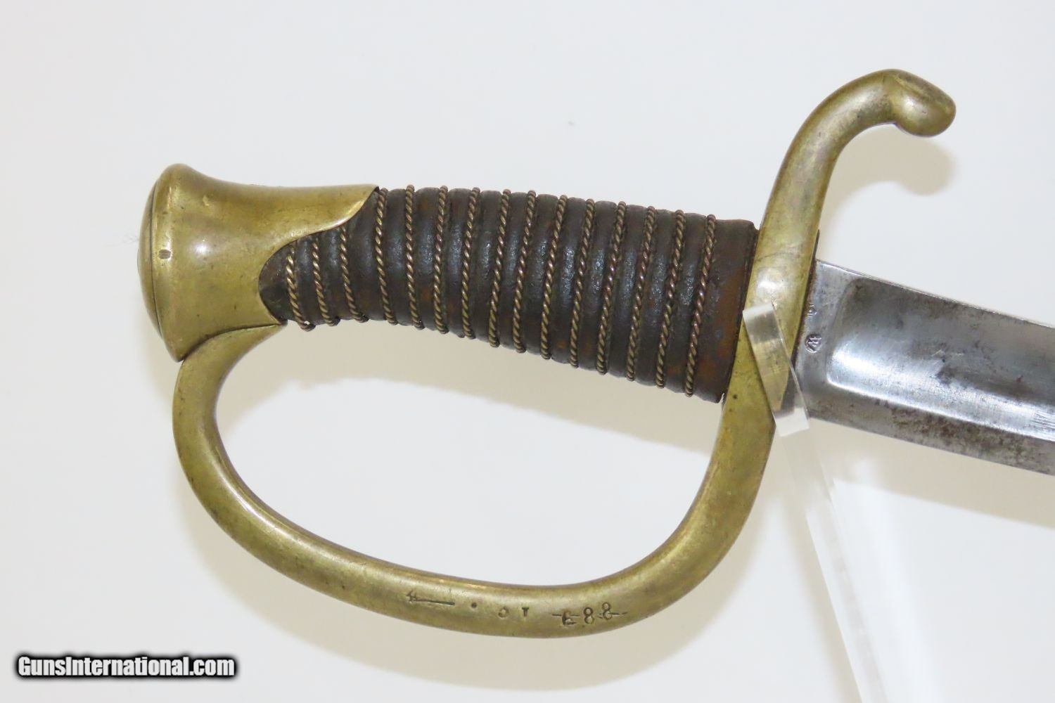 Description: CIVIL WAR Antique U.S. Model 1840 LIGHT ARTILLERY Saber North South Horse Artillery Sidearm Here we present an antique U.S. Model of 1840 Light Artillery Saber, made circa the 1840s through the 1860s. These were based upon a French design and were carried by light or “horse” artillery soldiers on both sides of the conflict—these units would ride into battle with their smaller artillery pieces, not the sort of giant pieces that are associated with siege warfare. The Model 1840 features a beautifully curved blade with a single brass knucklebow instead of a basket hilt. The grip is wrapped in leather and braided wire. There is a “W” within a circle stamp on the left side of the ricasso. The overall length is 37 inches. This saber would have been used in the American Civil War by Union Artillery Troops. The overall condition is very good. The blade is bright. The hilt is solid and in good shape. The finish on the scabbard has matured to a brown patina and remains in good condition. “2603 is stamped on both the left side of the hand guard and the scabbard. “410” and “688” are marked on the right side of the hand guard. Here is a great Civil War Light Artillery Saber to display in your collection! Own the original! This is a legitimate antique and not a reproduction. Overall condition as seen in photos. Very Fast. Very Safe. FREE SHIPPING WORLDWIDE. Delivered directly to your door by express mail! Guaranteed AUTHENTIC & Includes CERTIFICATE OF AUTHENTICITY. ancestryguns $1055 #200812 SOLD Antique: Yes |