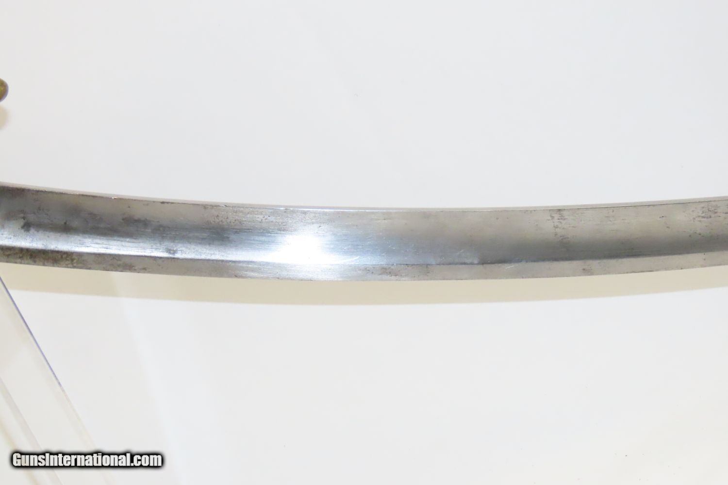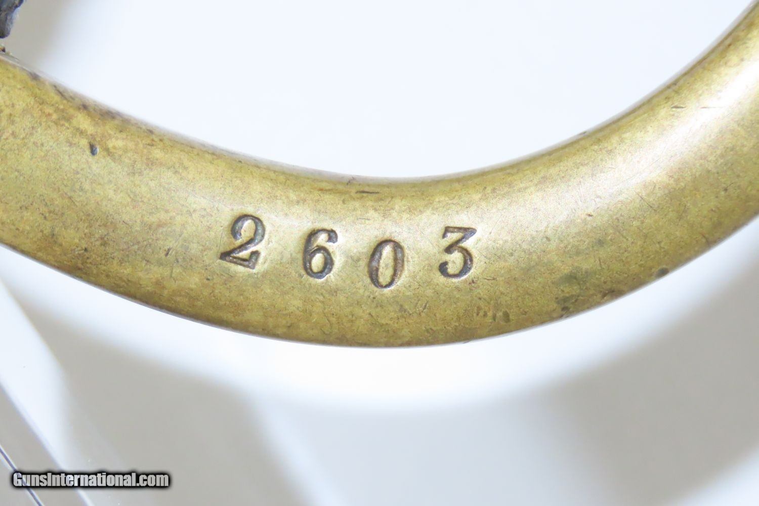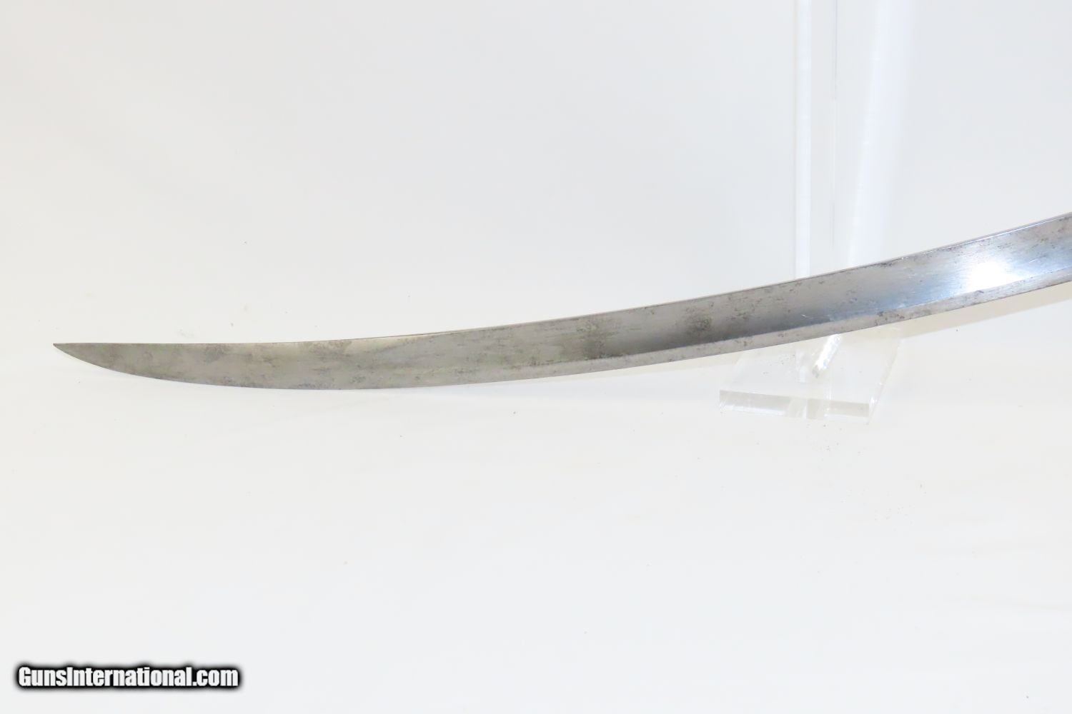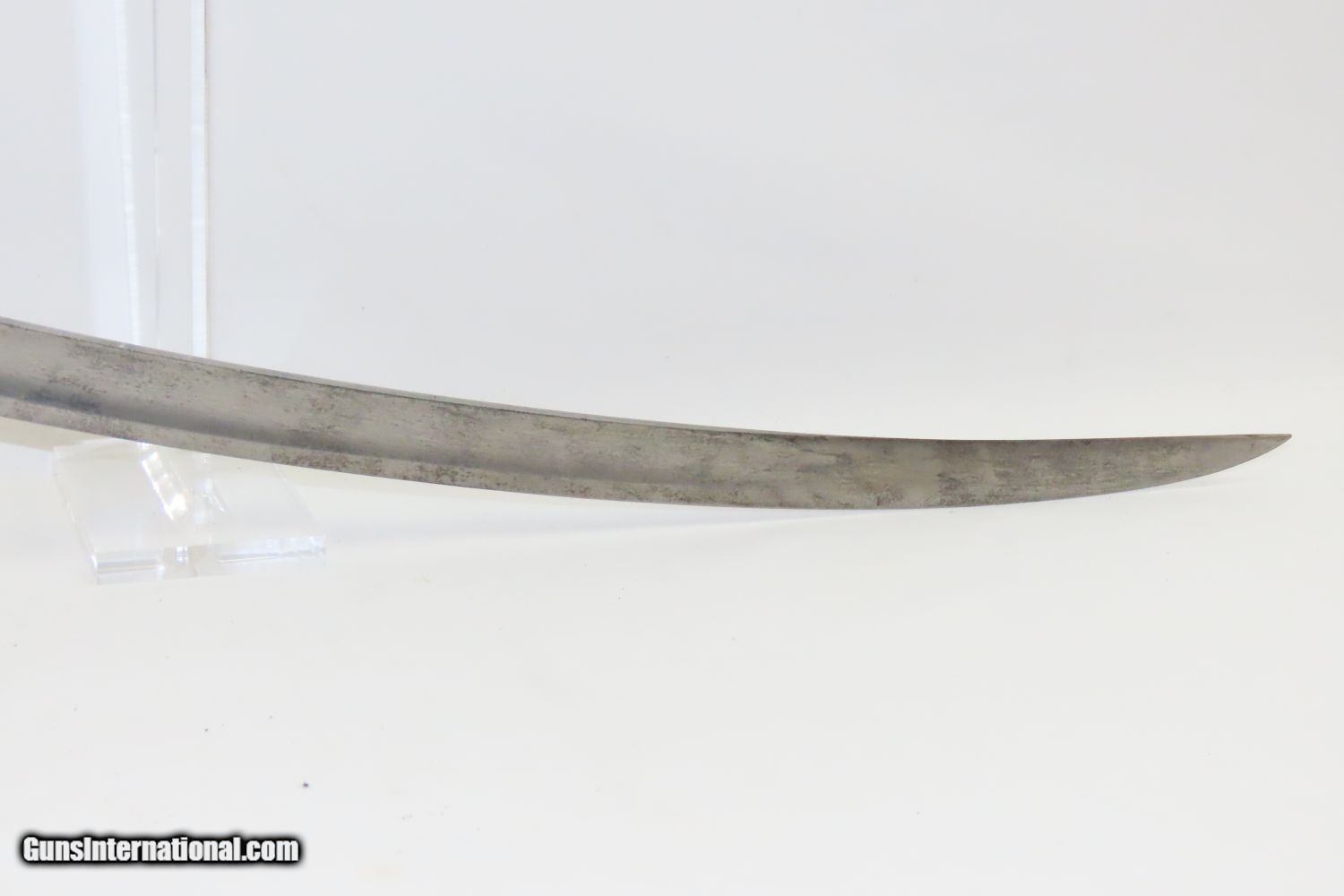 Description: CIVIL WAR Antique U.S. Model 1840 LIGHT ARTILLERY Saber North South Horse Artillery Sidearm Here we present an antique U.S. Model of 1840 Light Artillery Saber, made circa the 1840s through the 1860s. These were based upon a French design and were carried by light or “horse” artillery soldiers on both sides of the conflict—these units would ride into battle with their smaller artillery pieces, not the sort of giant pieces that are associated with siege warfare. The Model 1840 features a beautifully curved blade with a single brass knucklebow instead of a basket hilt. The grip is wrapped in leather and braided wire. There is a “W” within a circle stamp on the left side of the ricasso. The overall length is 37 inches. This saber would have been used in the American Civil War by Union Artillery Troops. The overall condition is very good. The blade is bright. The hilt is solid and in good shape. The finish on the scabbard has matured to a brown patina and remains in good condition. “2603 is stamped on both the left side of the hand guard and the scabbard. “410” and “688” are marked on the right side of the hand guard. Here is a great Civil War Light Artillery Saber to display in your collection! Own the original! This is a legitimate antique and not a reproduction. Overall condition as seen in photos. Very Fast. Very Safe. FREE SHIPPING WORLDWIDE. Delivered directly to your door by express mail! Guaranteed AUTHENTIC & Includes CERTIFICATE OF AUTHENTICITY. ancestryguns $1055 #200812 SOLD Antique: Yes |