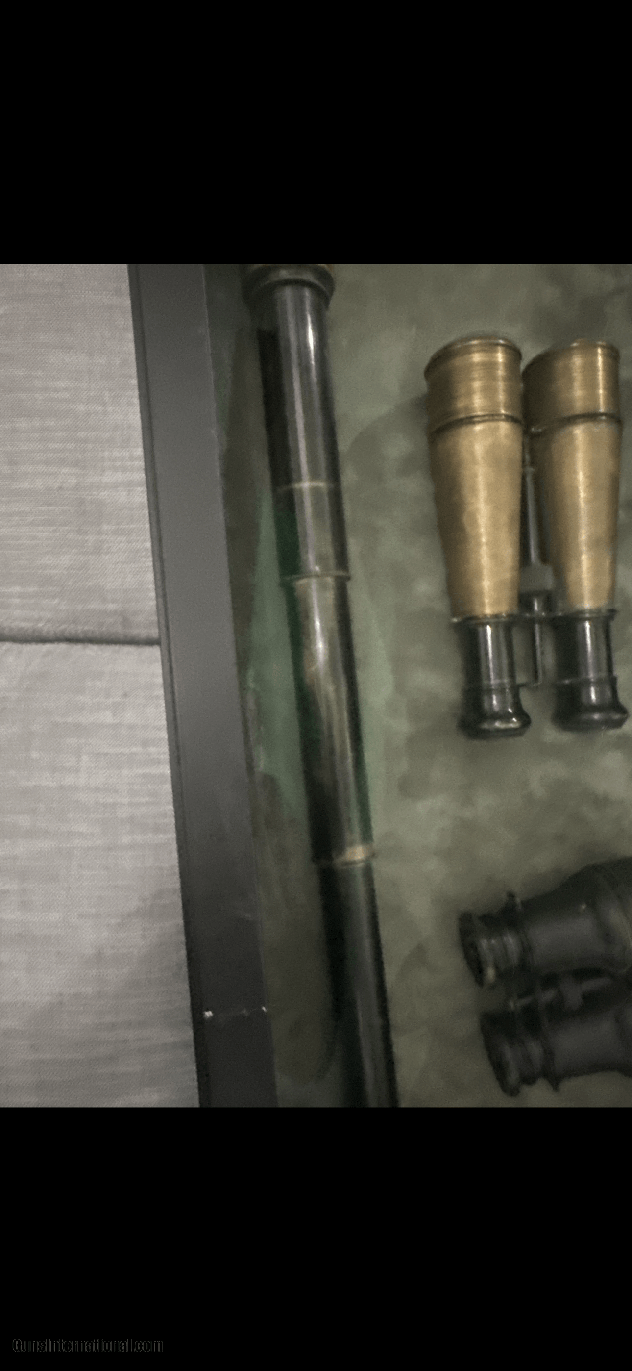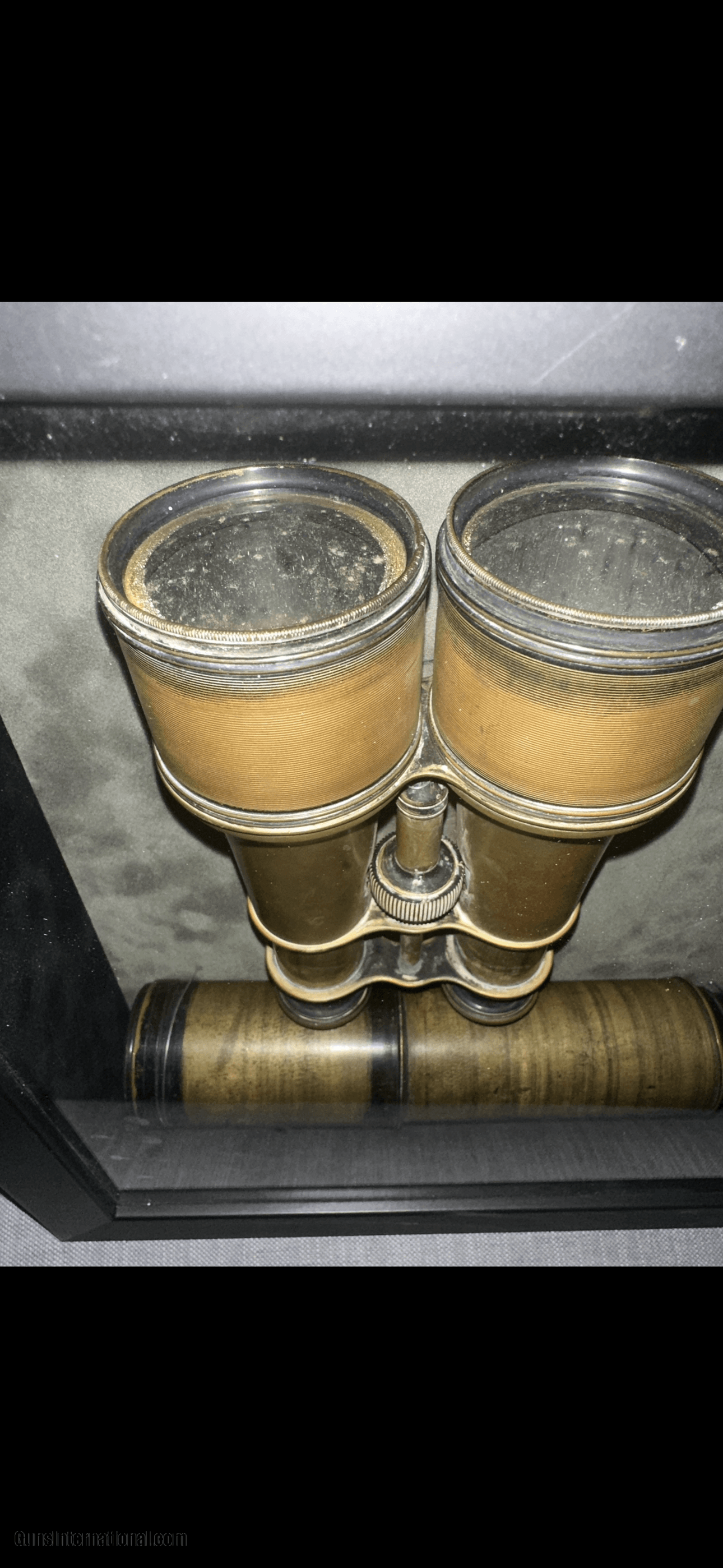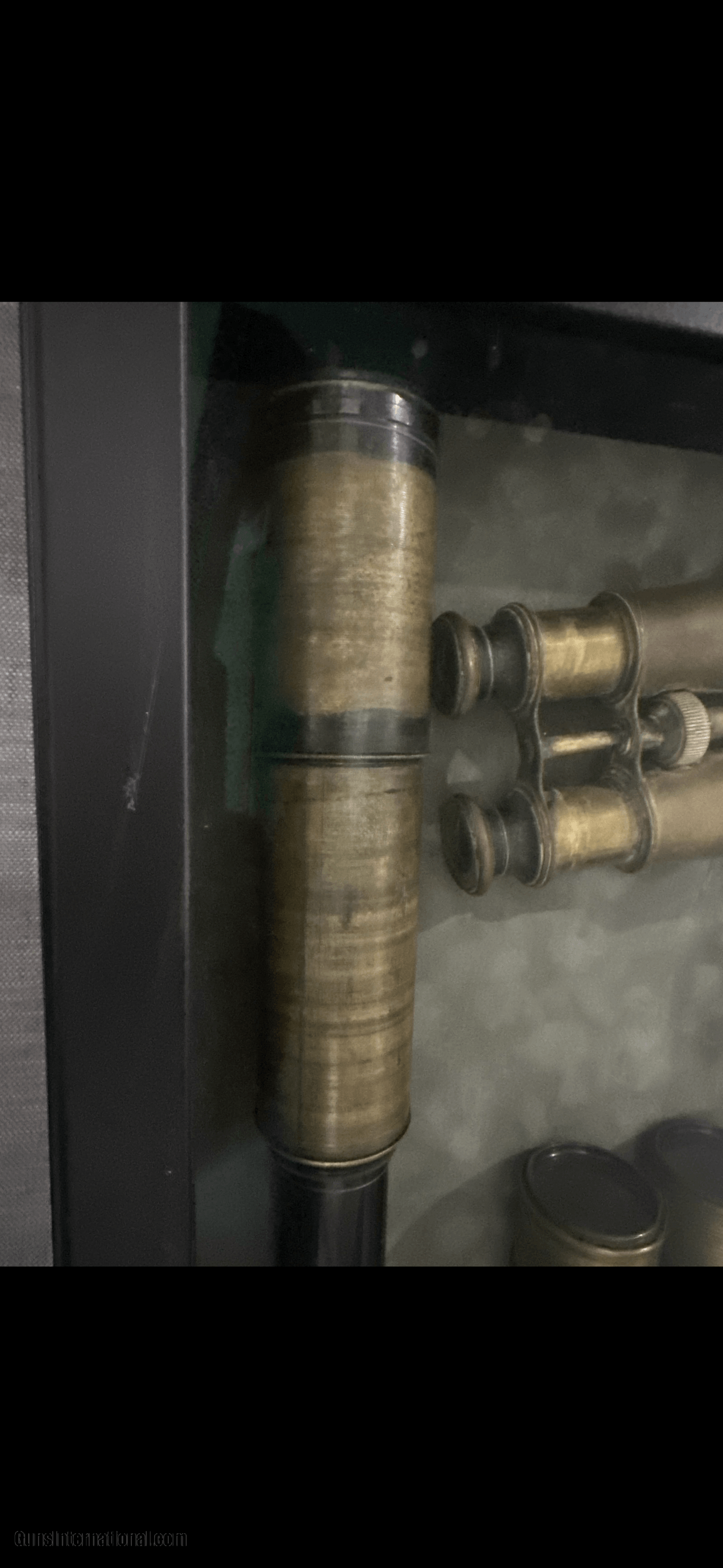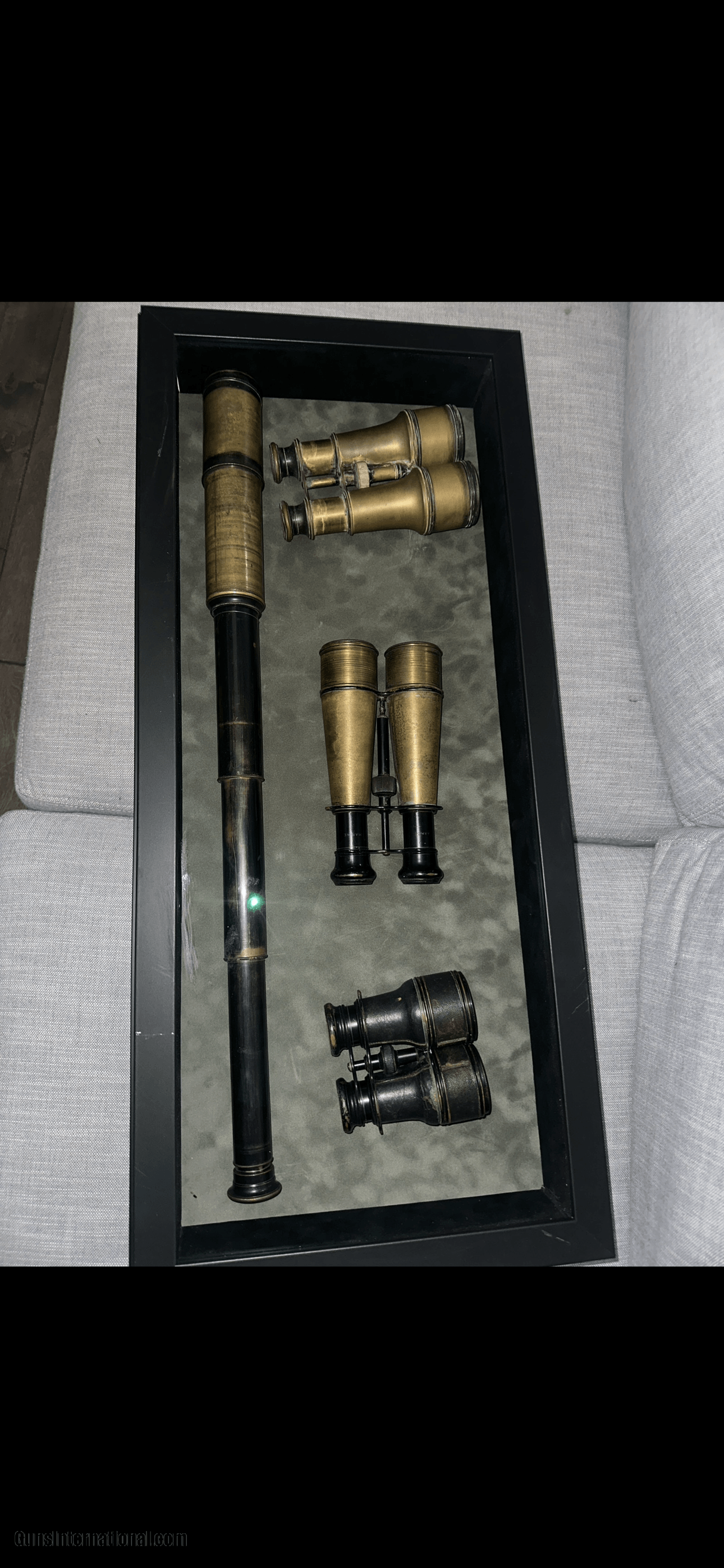 Description: Set of 4. Three binoculars and One Monocular civil war era. Used by naval and infantry troops for U.S. and French troops. All are authentic and sealed in museum glass. Length of the case is 34" width 15" and 3.5" height. Stamped Armee Marine on one pair. Armee is not misspelled. The framing was $350 by itself. Price: $849.99 Buy Now Pay with