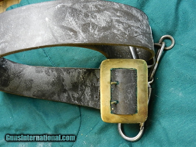 Description: An unusual C.W snap swivel for a mounted soldier and used with a carbine with a sling ring. The black leather is covered with age staining and mold. Not sure of leather age but the swivel has a hand made 19th century workmanship.. the large buckle is solid brass. Would look good with that C.W. carbine. Check my inventory for unusual and rare items. We don’t have asite .I prefer money orders or a check. Item ships when funds come in. If you can only pay with a card let me know. I hope you like my wide selection of unusual guns, knives and gun parts. Shipping price determined by zip code. I try to keep the prices affordable, which means I make less money than most dealers. You won’t get altitude sickness with my prices! I consistently have the best selection of older guns If you BUY IT NOW you must still contact us for details buy it now doesn't end the sale, it just sends an email telling us you want to buy this gun. A phone call won’t secure a sale! Not home many times, the first buyer by email buys the gun !Thissite doesnot close down a sale when you do a BUY IT NOW like Ebay!I can get six buy it nows in an hour, first buyer to email gets the guns, others are in second place! Best to send another email . Sometimes not home to get calls. Some guns are required shipment to a gun dealer near you for a transfer to you when it arrives. With the widest selection of older guns at great prices, We don’t have a store, and sell on the internet only. SOLD |